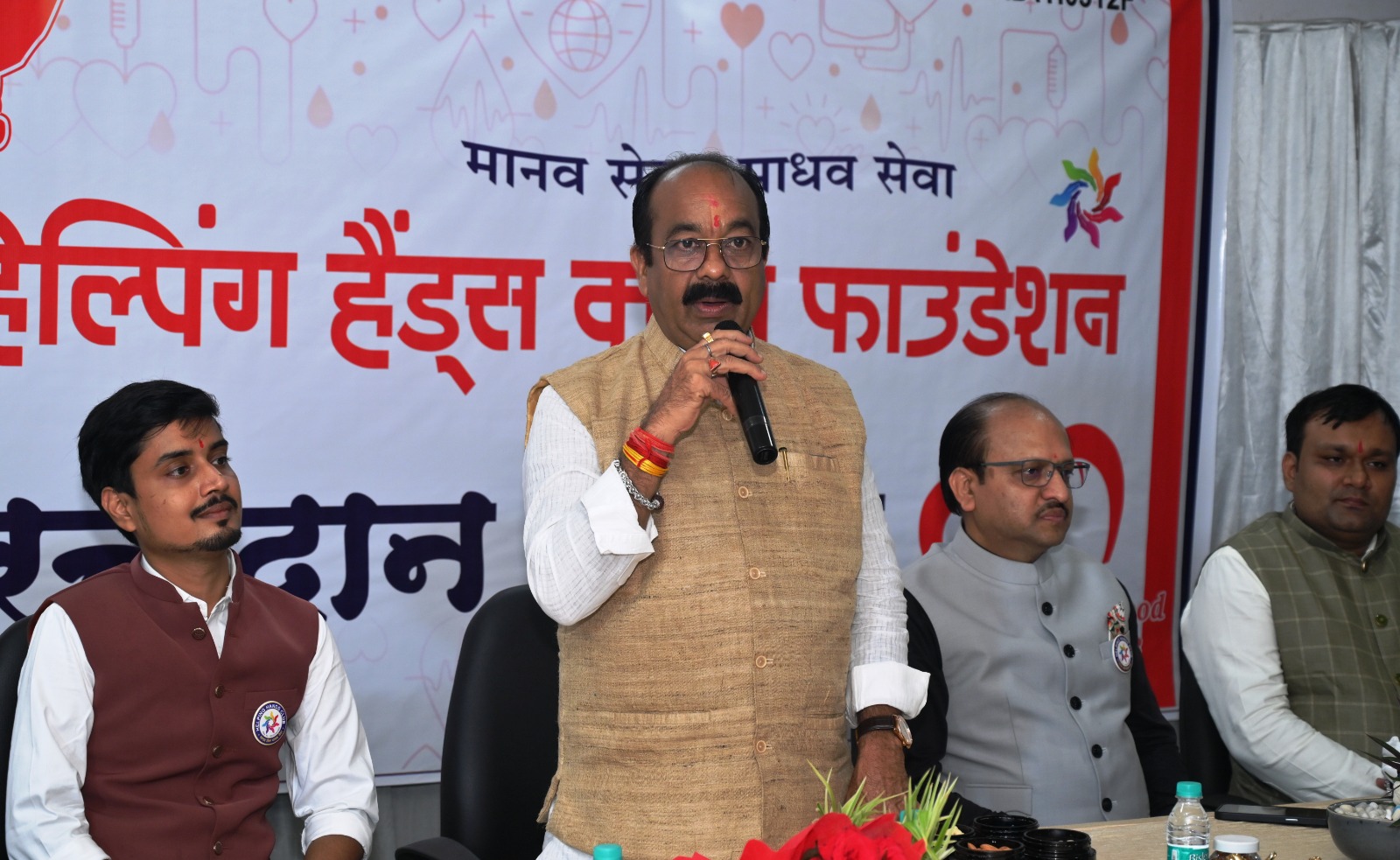 मेगा ब्लड डोनेशन कैंप के शुभारंभ के मौके पर हेल्पिंग हैंड्स क्लब फाउंडेशन के प्रदेशाध्यक्ष श्री सुधीर अग्रवाल, संरक्षक श्री मनोज गोयल, डॉ. नवीन बाफना, समाज सेवी सर्वश्री संजय अग्रवाल, विशाल खंडेलवाल, अंकित अग्रवाल, अमित अग्रवाल और श्रीमती शारदा अग्रवाल सहित फाउंडेशन के पदाधिकारी एवं सदस्य, तथा बड़ी संख्या में रक्तदाता मौजूद थे।