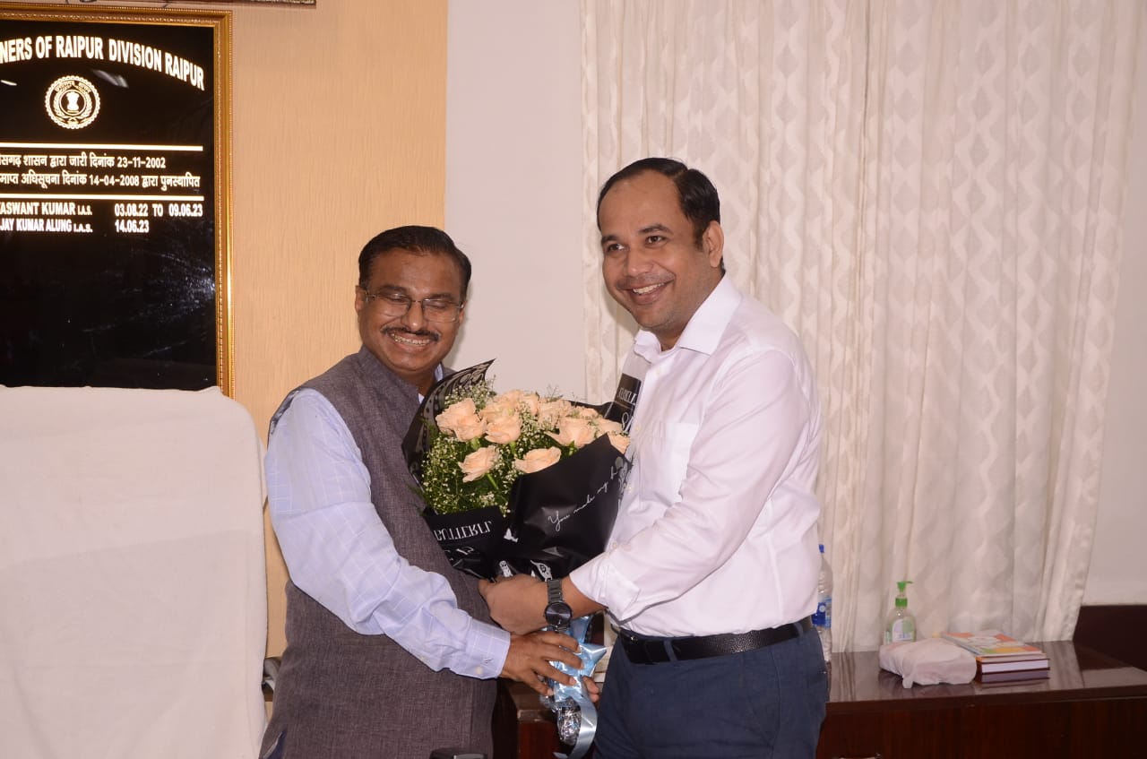 नव नियुक्त संभागायुक्त महादेव कावरे से कलेक्टर डॉ. गौरव सिंह ने की सौजन्य मुलाकात