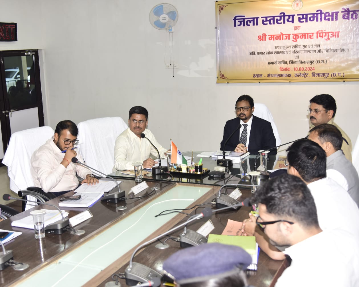 बिलासपुर / अपर मुख्य सचिव गृह एवं जेल विभाग तथा जिले के प्रभारी सचिव श्री मनोज कुमार पिंगुआ ने शनिवार को जिला कार्यालय के सभाकक्ष में अधिकारियों की बैठक लेकर विकास कार्यों की प्रगति की समीक्षा की। उन्होंने एक एक विभाग से जानकारी लेकर कार्यों में और तेजी लेकर लक्ष्य हासिल करने के निर्देश दिए। उन्होंने मौसमी बीमारियों और खेती किसानी की विशेष समीक्षा की। उन्होंने कहा कि शासन स्तर पर यदि किसी विभाग का प्रस्ताव लंबित है, तो बताएं ताकि फॉलोअप कर तत्काल उसका निराकरण किया जा सके। बैठक में कलेक्टर अवनीश शरण, एसपी रजनेश सिंह समेत तमाम विभागों के आला अधिकारी उपस्थित थे। कलेक्टर ने बैठक की कार्रवाई का संचालन करते हुए विकास कार्यों की प्रगति से अवगत कराया।