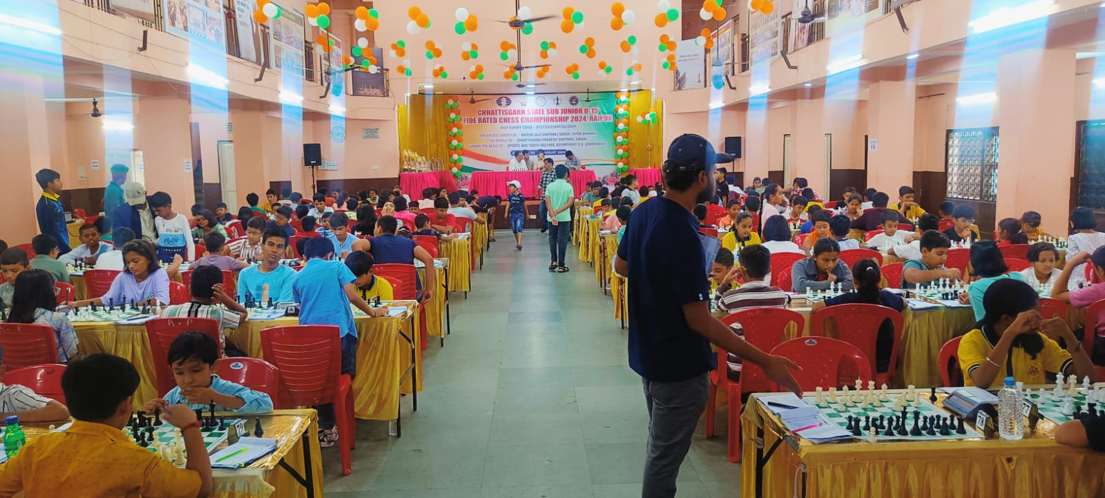 रायपुर। छत्तीसगढ़ प्रदेश शतरंज संघ तथा खेल एवं युवा कल्याण विभाग के संरक्षण में रायपुर जिला शतरंज संघ तथा विप्र भवन प्रबंधन समिति के संयुक्त तत्वाधान में आयोजित अंडर 15 बालक एवम बालिका चयन एवम फिडे रेटिंग प्रतियोगिता का शुभारंभ 15 अगस्त को शाम 3 बजे बजे विप्र भवन समता कॉलोनी में एम आई सी लोक निर्माण विभाग के अध्यक्ष श्री ज्ञानेश शर्मा एवं नेता प्रतिपक्ष नगर निगम श्रीमती मीनल चौबे ने दीप प्रज्ज्वलित कर किया विशिष्ट अतिथि के रूप में खेल एवम युवा कल्याण विभाग के सहायक संचालक श्री प्रवेश जोशी एवं छत्तीशगड़ शतरंज संघ के सचिव श्री हेमंत खूंटे उपस्थित थे, उन्होंने प्रदेश भर से आये हुए खिलाड़ियों का उत्साह बढ़ाते हुए कहा कि शतरंज के द्वारा आप जीवन के किसी भी क्षेत्र में उन्नति के शिखर पर पहुंच सकते है ,साथ ही उन्होंने खिलाड़ियों के अभिभावकों की सराहना करते हुए उनके समर्पण और सहयोग के लिए धन्यवाद दिया। प्रतियोगिता कुल 9 चक्रों में खेली जा रही है जिसमे 169 प्रतिभागी विजेता बनने के लिए संघर्ष कर रहे है।