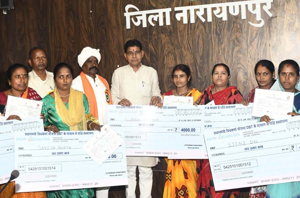 रायपुर, / प्रदेश के खेल एवं युवा कल्याण, मंत्री श्री टंक राम वर्मा ने अपने एक दिवसीय नारायणपुर जिला प्रवास के दौरान विश्वकर्मा योजना के अंतर्गत प्रशिक्षित महिलाओं को चेक एवं प्रमाण-पत्र का वितरण किया। इसके साथ ही महिलाओं को 4000 रुपए स्टाइपेंड तथा 15 हजार रुपए का टूलकिट प्राप्त होगा।मंत्री श्री वर्मा ने प्रशिक्षित महिलाओं की सराहना करतु हुए कहा कि अधिक से अधिक महिलाओं को कौशल विकास योजना से लाभ लेना चाहिए। महिलाएं जितना अधिक प्रशिक्षित होगी उतना ही रोजगार के अवसर प्राप्त होंगे। ज्ञात हो कि प्रधानमंत्री विश्वकर्मा योजना अंतर्गत जिले के 150 से अधिक हितग्राहियों को अब तक लाभान्वित किया जा चुका है। इस योजना के लिए मुख्य रूप से लाइवलीहुड कॉलेज तथा बालक औद्योगिक प्रशिक्षण संस्थान के माध्यम से पात्र हितग्राहियों को प्रशिक्षण का लाभ दिया जा रहा है।