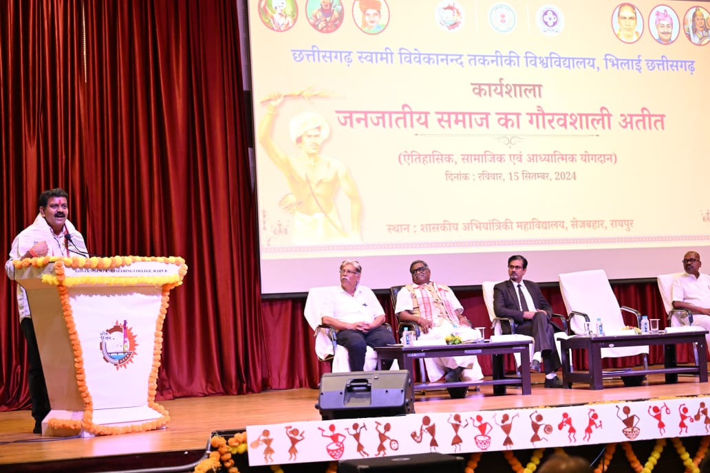 रायपुर,। छत्तीसगढ़ स्वामी विवेकानंद तकनीकी विश्वविद्यालय (सीएसवीटीयू), भिलाई के तत्त्वावधान में शासकीय अभियांत्रिकी महाविद्यालय, रायपुर में जनजातीय गौरव दिवस के निमित्त एक दिवसीय कार्यशाला का आयोजन किया गया। इस कार्यशाला का उद्देश्य जनजातीय गौरव दिवस के उपलक्ष्य में जनजातीय समाज के ऐतिहासिक, सामाजिक और आध्यात्मिक योगदान को सामने लाना है।