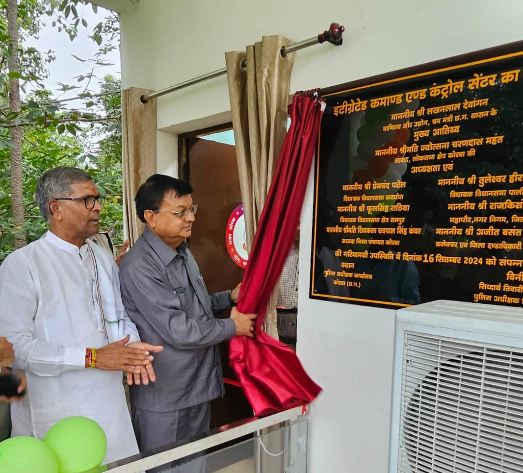रायपुर / कोरबा शहर में सोमवार को पुलिस अधीक्षक कार्यालय में निर्मित अपराध रोकथाम एवं विवेचना के लिए स्थापित सीसीटीवी कैमरे के इंटीग्रेटेड कमान और कंट्रोल सेंटर का लोकार्पण प्रदेश के वाणिज्य, उद्योग और श्रम मंत्री श्री लखन लाल देवांगन ने किया। कैबिनेट मंत्री द्वारा इंटीग्रेटेड कमांड और कंट्रोल सेंटर (आईसी-3) का फ़ीता काटकर लोकार्पण किया। इस अवसर पर मंत्री श्री देवांगन ने कहा कि सुरक्षा के दृष्टिकोण से भी यह योजना काफी महत्वपूर्ण है।