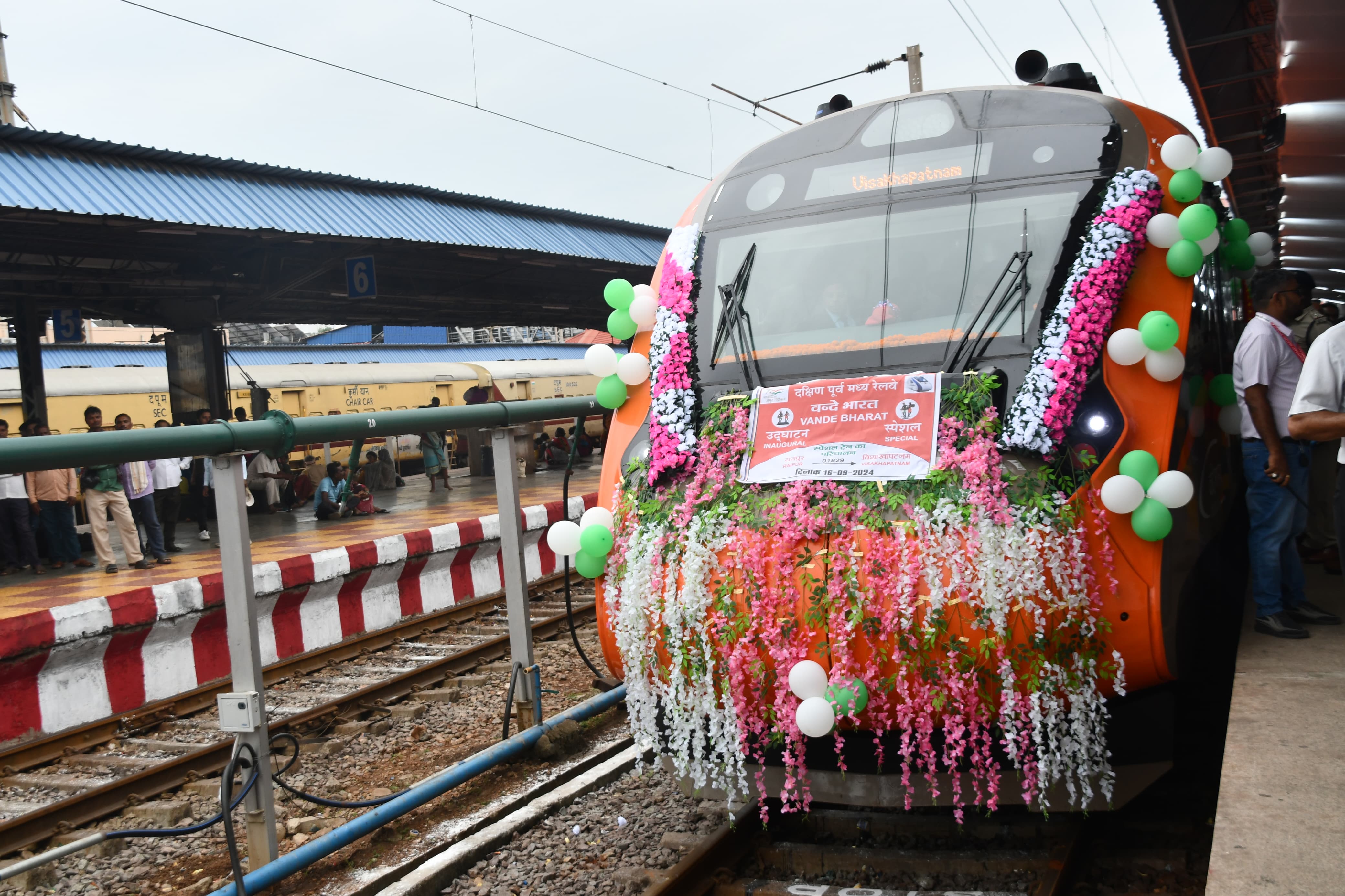 -रायपुर स्टेशन पर रायपुर (दुर्ग)- विशाखपट्टनम वंदे भारत एक्सप्रेस ट्रेन का भव्य स्वागत किया गया