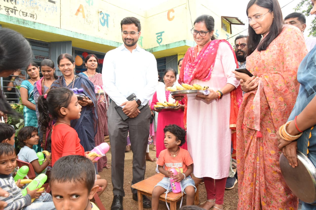 कलेक्टर ने आंगनबाड़ी केन्द्र में मनाये जा रहे वजन त्यौहार का किया निरीक्षण
