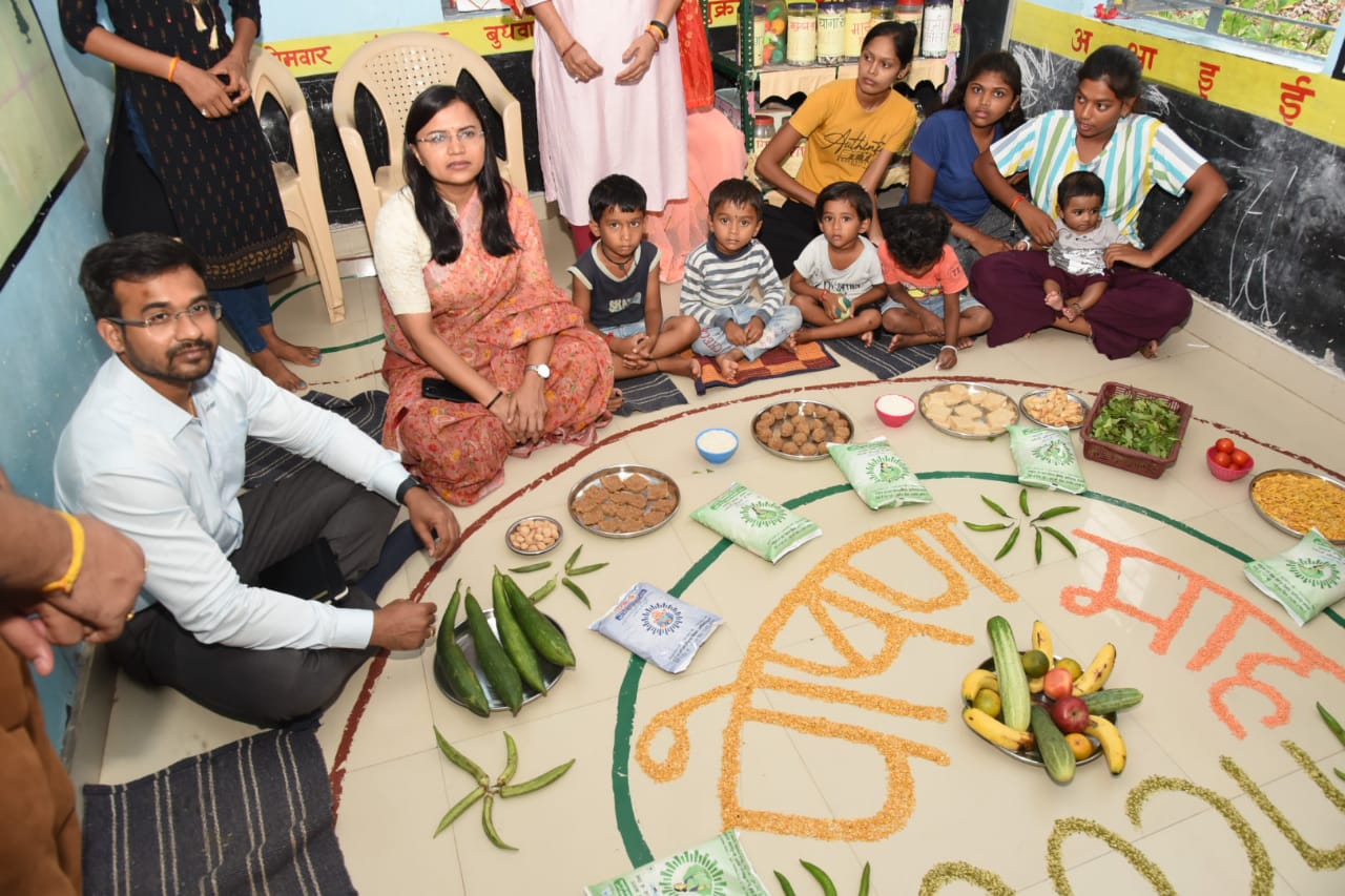 कलेक्टर ने आंगनबाड़ी केन्द्र में मनाये जा रहे वजन त्यौहार का किया निरीक्षण