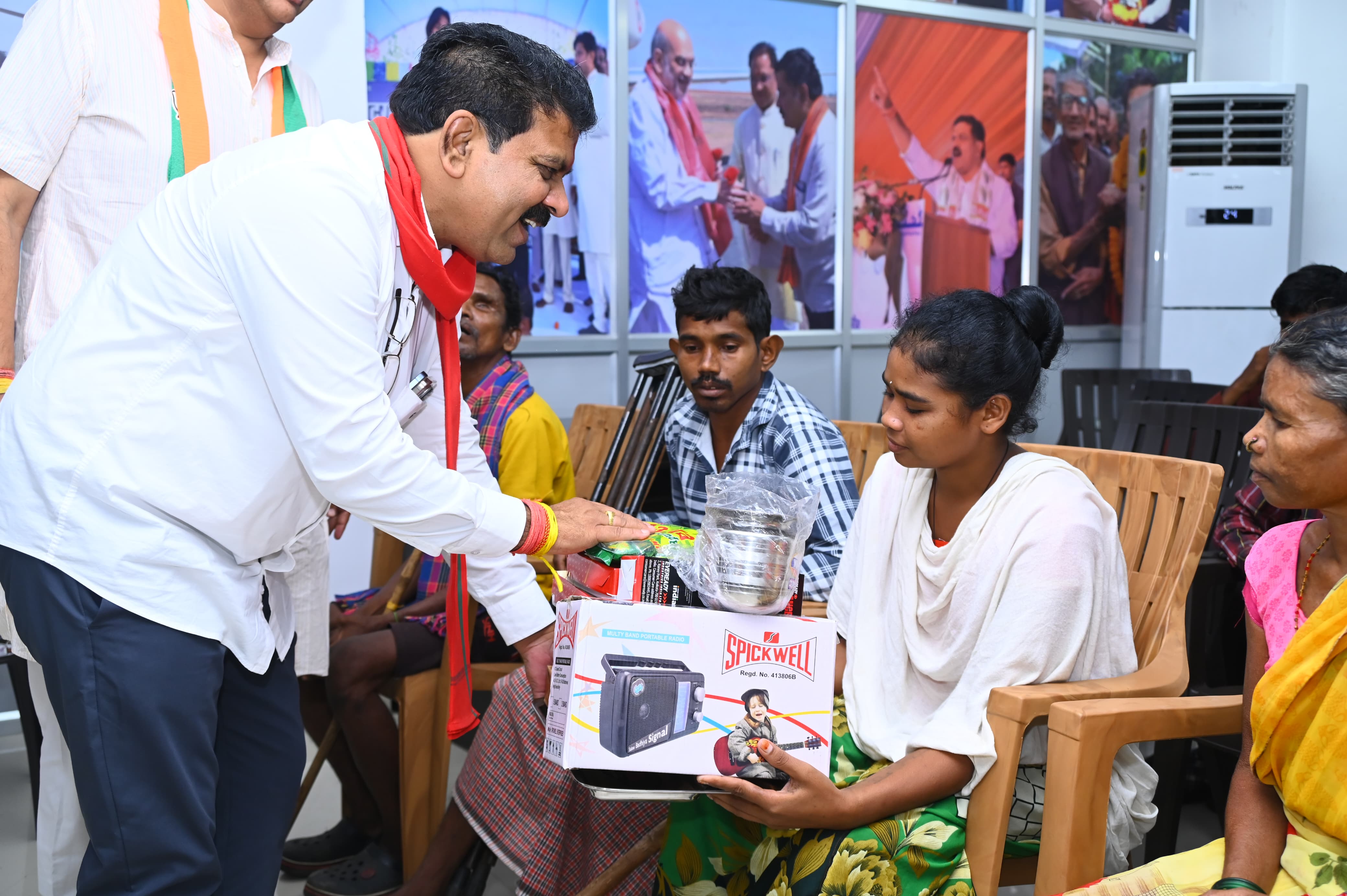 रायपुर,। आज उपमुख्यमंत्री श्री विजय शर्मा ने अपने निवास कार्यालय पर माओवादी हिंसा से पीड़ित बस्तर के लगभग 55 नागरिकों का गर्मजोशी से स्वागत किया, जो अपनी व्यथा और समस्याओं को लेकर दिल्ली गए थे। उपमुख्यमंत्री श्री शर्मा ने व्यक्तिगत रूप से प्रत्येक पीड़ित से मुलाकात की और उनका हालचाल जाना। उपमुख्यमंत्री ने उनकी पीड़ाओं को ध्यान से सुना। इस मौके पर उन्होंने पीड़ितों को दैनिक आवश्यकताओं की वस्तुएं जैसे रेडियो, घड़ी, थाली, लोटा, गिलास, टॉर्च, छत्तीसगढ़ी व्यंजन, बैग और बच्चों के लिए चॉकलेट का वितरण कर उनकी सहायता की।