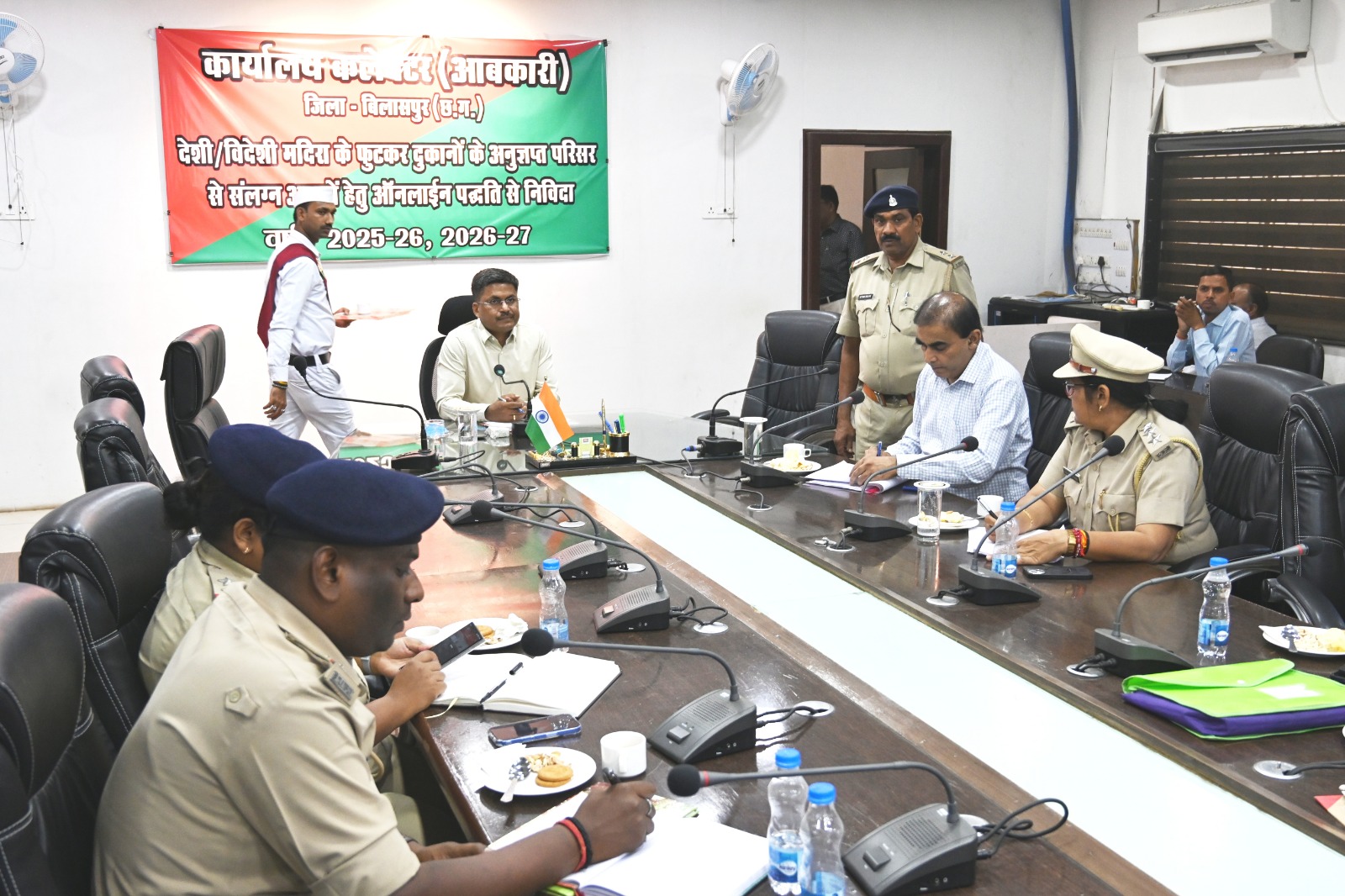 बिलासपुर /कलेक्टर अवनीश शरण की अध्यक्षता में जिला कार्यालय के मंथन सभाकक्ष में मदिरा दुकानों के अहाता आवंटन की कार्यवाही संपन्न हुई। वित्तीय वर्ष 2025-26 एवं 2026-27 के लिये बिलासपुर जिले की 66 देशी,विदेशी एवं कम्पोजिट मदिरा दुकानों में से 36 मदिरा दुकानों के संलग्न अहाता/अहातों के समूह हेतु लाईसेंस धारियों के चयन की प्रक्रिया पूर्ण की गई। अहातों की अनुज्ञप्ति हेतु 36 मदिरा दुकानों में से 27 मंदिरा दुकानों हेतु कुल 82 आवेदन प्राप्त हुए थे। प्राप्त आवेदनों में से उच्चतम बोली लगाने वाले आवेदक का चयन किया गया। चयनित आवेदकों को 02 दिवस के भीतर निर्धारित राशि जमा करनी होगी। शेष 9 मदिरा दुकानों के अहातों हेतु आवेदन पत्र प्राप्त नहीं हुए । उनके व्यवस्थापन हेतु आगामी तिथि आबकारी आयुक्त छत्तीसगढ़ रायपुर द्वारा नियत की जावेगी। चयन प्रक्रिया की कार्यवाही में सहायक जिला आबकारी अधिकारी समीर मिश्रा, कल्पना राठौर, छबि लाल पटेल एवं आबकारी उपनिरीक्षक धर्मेन्द्र शुक्ला, रमेश दुबे, ऐश्वर्या मिंज, नेतराम बंजारे, भूपेन्द्र जामडे एवं अन्य स्टॉफ भी उपस्थित थे।