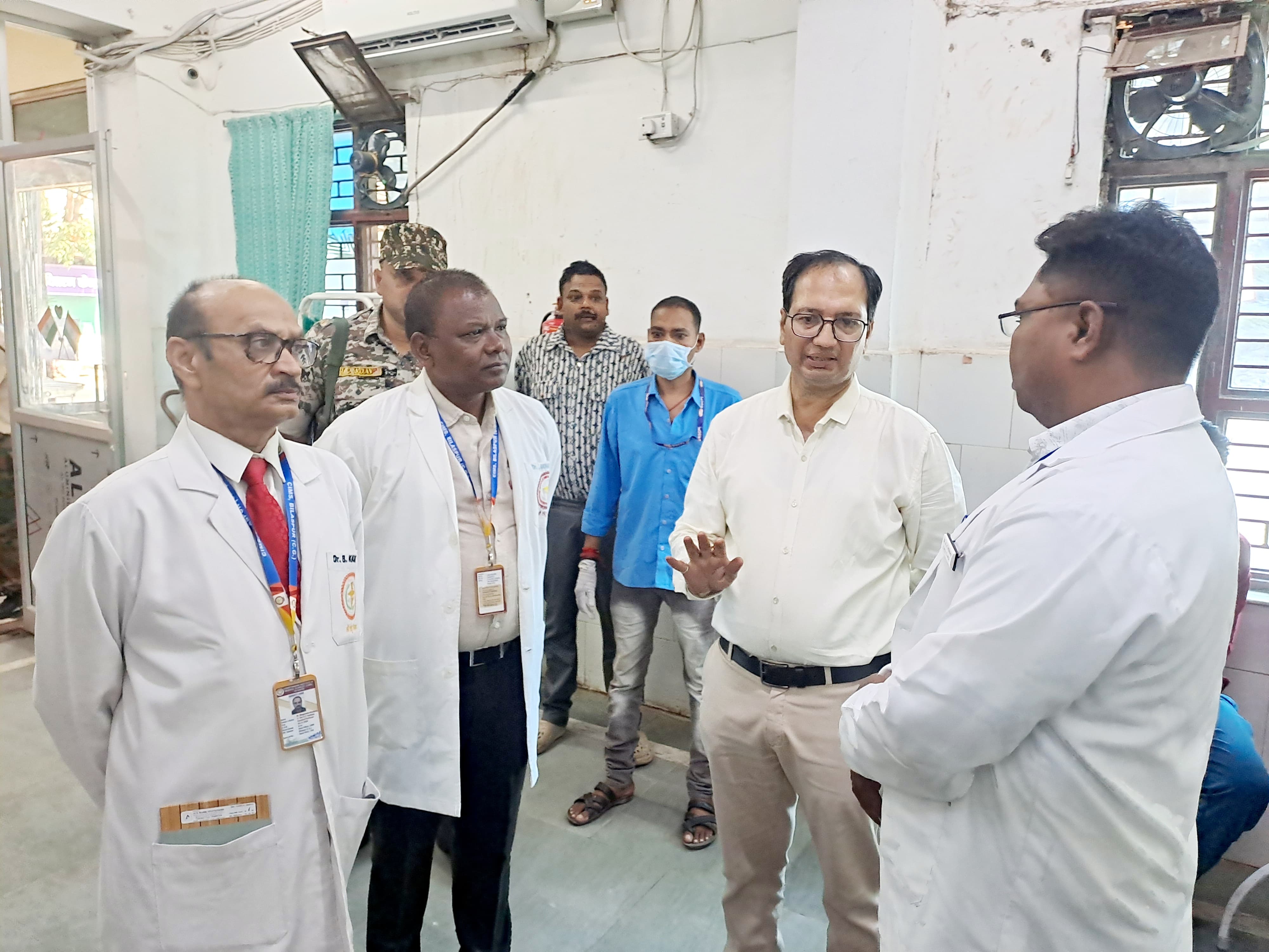 कलेक्टर ने निरीक्षण के दौरान सिम्स प्रबंधन को निर्देशित किया गया है कि मरीज हित में ओ.पी.डी. में आने वाले मरीजों की जानकारी के लिए एम.आर.डी. पास स्थित लोहे को दरवाजे के पास बोर्ड लगाने के लिए नगर निगम को दिशा निर्देश दिए। कैजुअल्टी ओ.पी.डी. में चिकित्सकों एवं मरीजों से चर्चा कर मरीजों को मिलने वाले सुविधाओं जैसे व्हील चेयर, ट्राली में मरीजों को वार्डों में पहुँचाने की जानकारी ली गई।एम.आर.डी. के ओ.पी.डी. और आई.पी.डी. पंजीयन कक्ष में आभा ऐप के माध्यम की जा रही पंजीयन की जानकारी एवं उचित दिशा निर्देश दिया गया। मरीजों को खडे न रहकर बैठक व्यवस्था को सुदृढ़ करने के निर्देश दिए एवं प्रत्येक पंजीयन स्थल में आभा ऐप के बार कोड स्कैनर लगाने कहा गया। ट्रायज यूनिट की व्यवस्था का जायजा लेते हुए चिकित्सकों से जानकारी चाही गई कि एक्सीडेंटल केस किस क्षेत्र से ज्यादा संख्या में आते हैं । कैजुअल्टी वार्ड के मरीजों एवं परिजनों से चिकित्सकीय सुविधाओं की जानकारी ली गई। इस दौरान बताया गया कि कैजुअल्टी वार्ड के एच डी यू यूनिट का कार्य सी.जी.एम.एस.सी. को जल्द कार्य पर्ण करने का निर्देश दिए गए। गायनिक वार्ड के निरीक्षण के दौरान परिजनों को बैठने के लिए और अधिक कुर्सियां लगाने एवं उनके समानों को रखने के लिए उचित व्यवस्था करने के लिए निर्देश दिए। पीने के लिए पानी के जगह को साफ-सुथरा रखने एवं नए नल लगाने की दिशा निर्देश दिए।