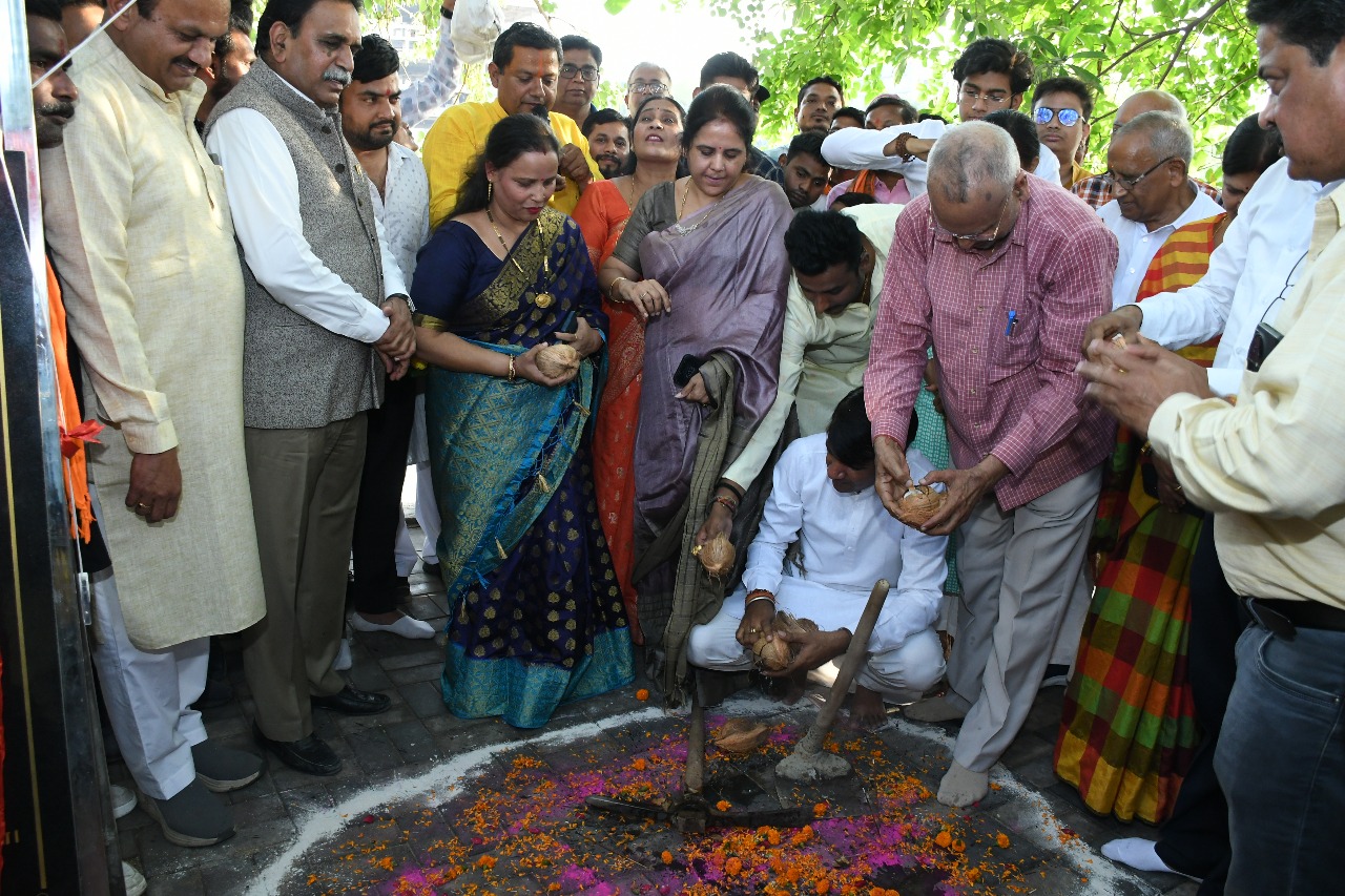 रायपुर। प्रदेश के केबिनेट मंत्री एवं रायपुर पश्चिम विधायक श्री राजेश मूणत ने नगर पालिक निगम रायपुर की महापौर श्रीमती मीनल चौबे, सभापति श्री सूर्यकांत राठौड़, राज्य लौह शिल्पकार विकास बोर्ड अध्यक्ष श्री प्रफुल्ल विश्वकर्मा, एमआईसी सदस्य सर्वश्री दीपक जायसवाल, भोला राम साहू, खेम कुमार सेन, श्रीमती सुमन अशोक पाण्डेय, श्रीमती गायत्री सुनील चंद्राकर, जोन 7 अध्यक्ष श्रीमती श्वेता विश्वकर्मा, जोन अध्यक्ष श्री गज्जू साहू, श्री अम्बर अग्रवाल, स्वामी आत्मानंद वार्ड पार्षद श्री आनंद अग्रवाल, पूर्व पार्षद सर्वश्री आशीष अग्रवाल, गोपी साहू सनत बैस, कुंवर रजयंत सिंह ध्रुव, मोहन उपारकर, पर्यावरणविद् श्री ललित सिंघानिया, जोन 7 कमिश्नर श्री राकेश शर्मा, कार्यपालन अभियंता श्री ईश्वर लाल टावरे, वार्ड निवासी गणमान्यजनों, सामाजिक कार्यकर्ताओं, महिलाओं नवयुवकों, आमजनों की बडी संख्या में उपस्थिति के मध्य श्रीफल फोड़कर एवं कुदाल चलाकर शिलान्यास करते हुए नगर निगम रायपुर के जोन 7 के तहत रायपुर पश्चिम विधानसभा क्षेत्र में आने वाले स्वामी आत्मानंद वार्ड कमांक 38 में एकमुश्त 2 करोड 89 लाख रू. के नये विकास कार्यों का भूमिपूजन करते हुए नागरिको को शानदार सौगात दी ।