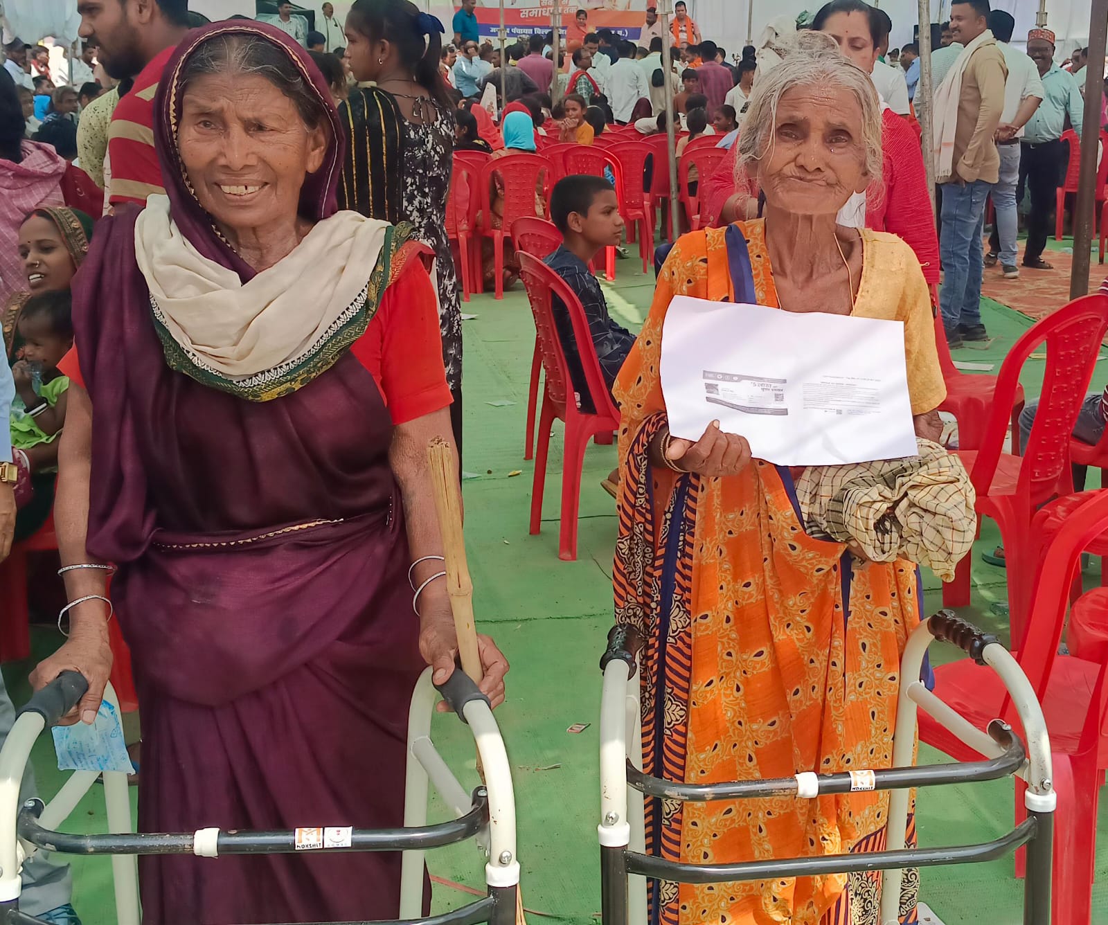 ग्राम धमनी निवासी 78 साल की बुजुर्ग रामकली साहू और 75 साल की दुलौरिन बाई उन बुजुर्गों में शामिल थीं, जिनके लिए यह शिविर किसी वरदान से कम नहीं था। चलने में दिक्कत होने के कारण दोनों घरों में कैद जैसी जिंदगी जी रही थीं। लेकिन सुशासन तिहार के तहत आयोजित समाधान शिविर में उन्हें चलने के लिए सहारा मिला है दोनों बुजुर्ग महिलाओं को चलने के लिए न केवल वॉकर मिली बल्कि उन्हें वय वंदन योजना के तहत 5 लाख रुपए की त्वरित सहायता भी मिली है।