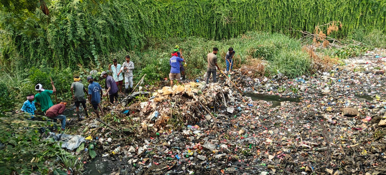 निगम जोन 8 स्वास्थ्य विभाग ने जलभराव की समस्या दूर करने कचरा नाले से बाहर निकाला