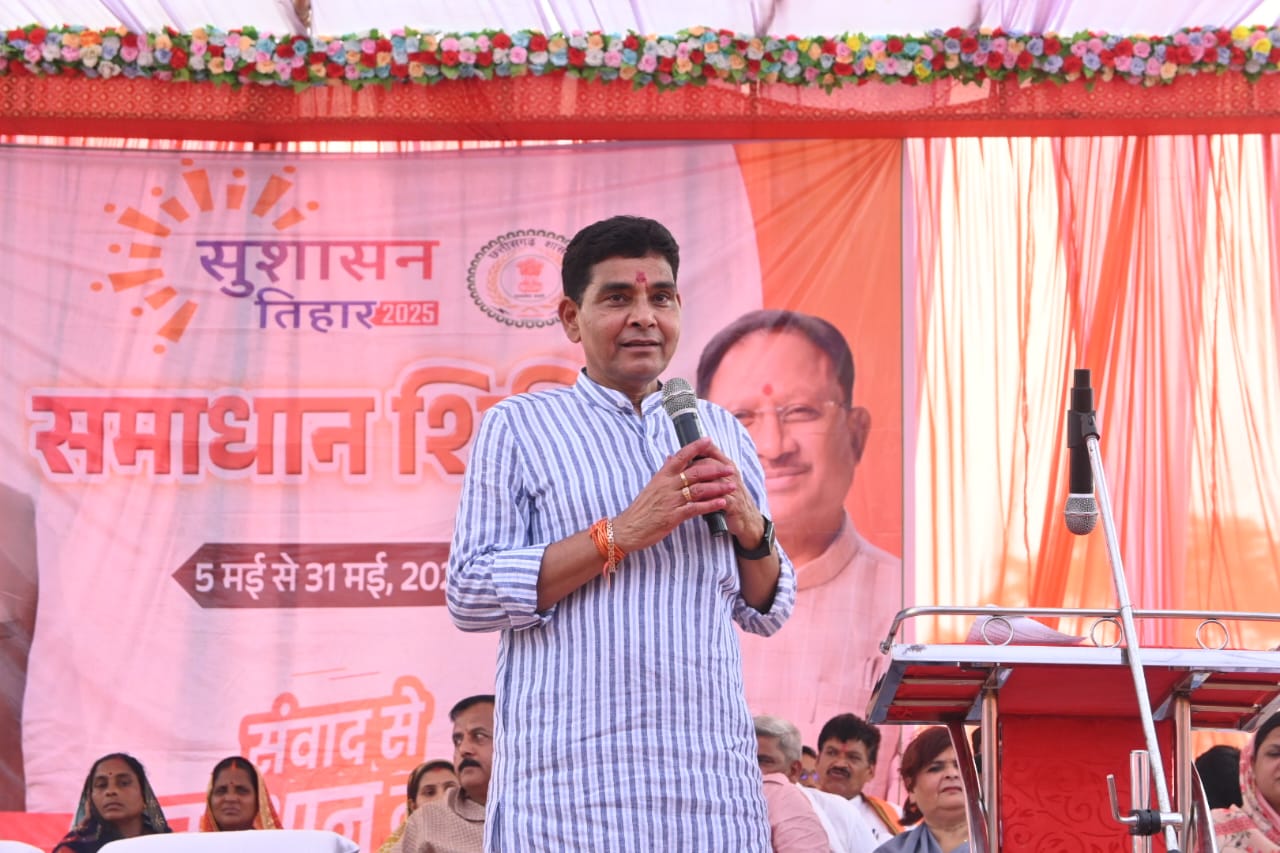 शिविर क़ो सम्बोधित करते हुए मंत्री श्री वर्मा ने कहा कि मुख्यमंत्री श्री विष्णु देव साय की विशेष पहल से सुशासन तिहार अंतर्गत समाधान शिविर का आयोजन किया जा रहा है। शिविर में लोगों के आवेदनों का त्वरित निराकरण होने से समस्याओं से निजात मिल रही है। उन्होंने कहा कि हमारी सरकार मोदी की गारंटी के सौ फीसदी वायदे क़ो 100 दिन में पूरा किया है। यह सरकाऱ काम करके दिखाने वाली सरकार है। योजना लागू होने से लोगों की क्रय शक्ति बढ़ी है जिससे आर्थिक समृद्धि व खुशहाली आई है। उन्होंने कहा कि हमारी सरकार आप लोगों के विश्वास क़ो टूटने नहीं देगी। सभी काम पारदर्शिता के साथ पूरा हो रहा है। गांव से लेकर शहर तक विकास दिख रहा है।
