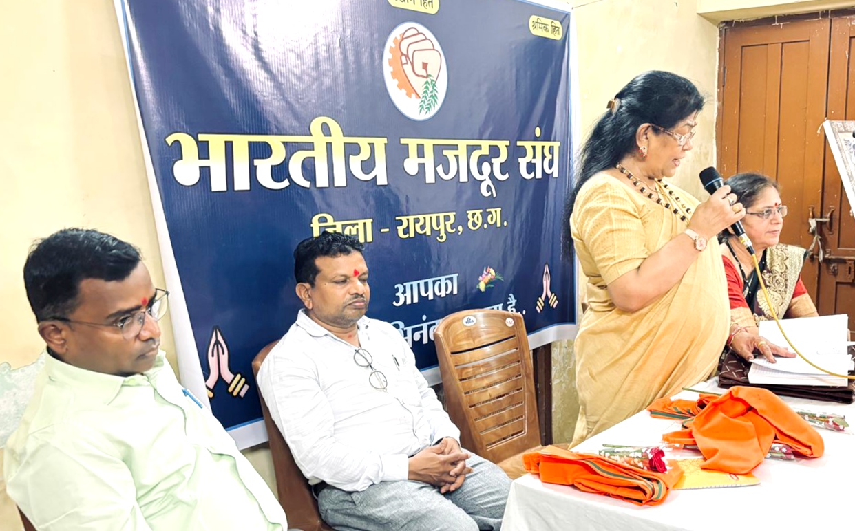 बीएमएस की ओर से रानी अहिल्या बाई होलकर जयंती पर राष्ट्रीय महिला दिवस मनाने के निर्णय के प्रकाश में शनिवार को बीएमएस रायपुर जिला शाखा ने महाराष्ट्र मंडल में यह आयोजन किया। जिला बीएमएस के वरिष्ठ सदस्य एवं महाराष्ट्र मंडल के अध्यक्ष अजय मधुकर काले ने अपने उद्द्बोधन में बीएमएस की सविस्तार जानकारी दी। मुख्य अतिथि लीना मोहन एंटी ने रानी अहिल्या बाई होलकर के जीवन की संघर्षपूर्ण उपलब्धियों पर चर्चा की। कार्यक्रम की अध्यक्षता कर रहे विभाग प्रमुख कोमल साहू ने आभार प्रकट करते हुए कार्यक्रम के समापन किया। कार्यक्रम का संचालन जिला बीएमएस के जिला मंत्री परमेश्वर कन्नौजे ने किया। कार्यक्रम में पवन ओगले, अचिंत बाराई, अंजू शर्मा, लेखराम साहू अनेक सदस्य उपस्थित रहे।