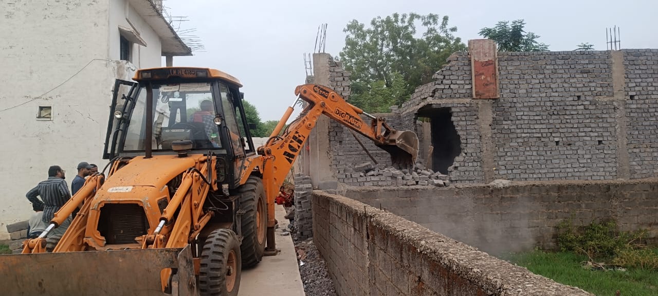 टीम प्रहरी निगम नगर निवेश ने जोन 8 क्षेत्र में रायपुरा में अवैध निर्माण हटाया