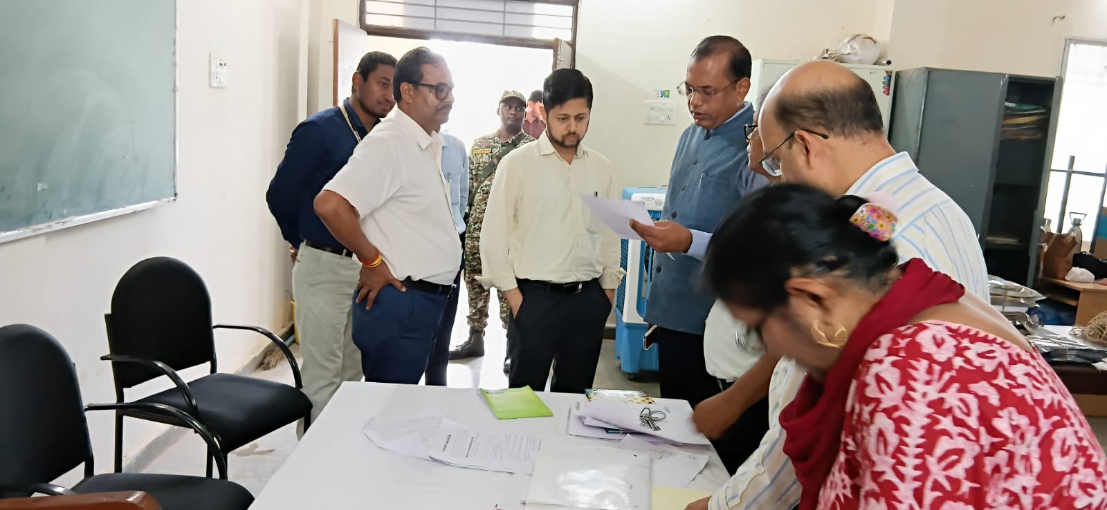 दुर्ग, / कलेक्टर श्री अभिजीत सिंह और छत्तीसगढ़ लोक सेवा आयोग के सदस्य श्री प्रवीण वर्मा ने आज शासकीय विश्वनाथ यादव तामस्कर स्नातकोत्तर महाविद्यालय दुर्ग स्थित परीक्षा केन्द्र का आकस्मिक निरीक्षण किया। उन्होंने केन्द्राध्यक्ष और जिले के परीक्षा प्रभारी से परीक्षा के संबंध में जानकारी ली तथा आवश्यक दिशा-निर्देश दिये। ज्ञात हो कि राज्य सेवा मुख्य परीक्षा 2024 के अंतर्गत आज परीक्षा केन्द्र में 362 परीक्षार्थी उपस्थित थे, वहीं 33 परीक्षार्थी अनुपस्थित होना बताया गया। राज्य सेवा मुख्य परीक्षा-2024 अंतर्गत 26 जून से 29 जून 2025 तक दो पालियों में परीक्षा आयोजित की जा रही है। इस अवसर पर जिले के परीक्षा प्रभारी डिप्टी कलेक्टर श्री हितेश पिस्दा एवं अन्य अधिकारीगण उपस्थित थे।
