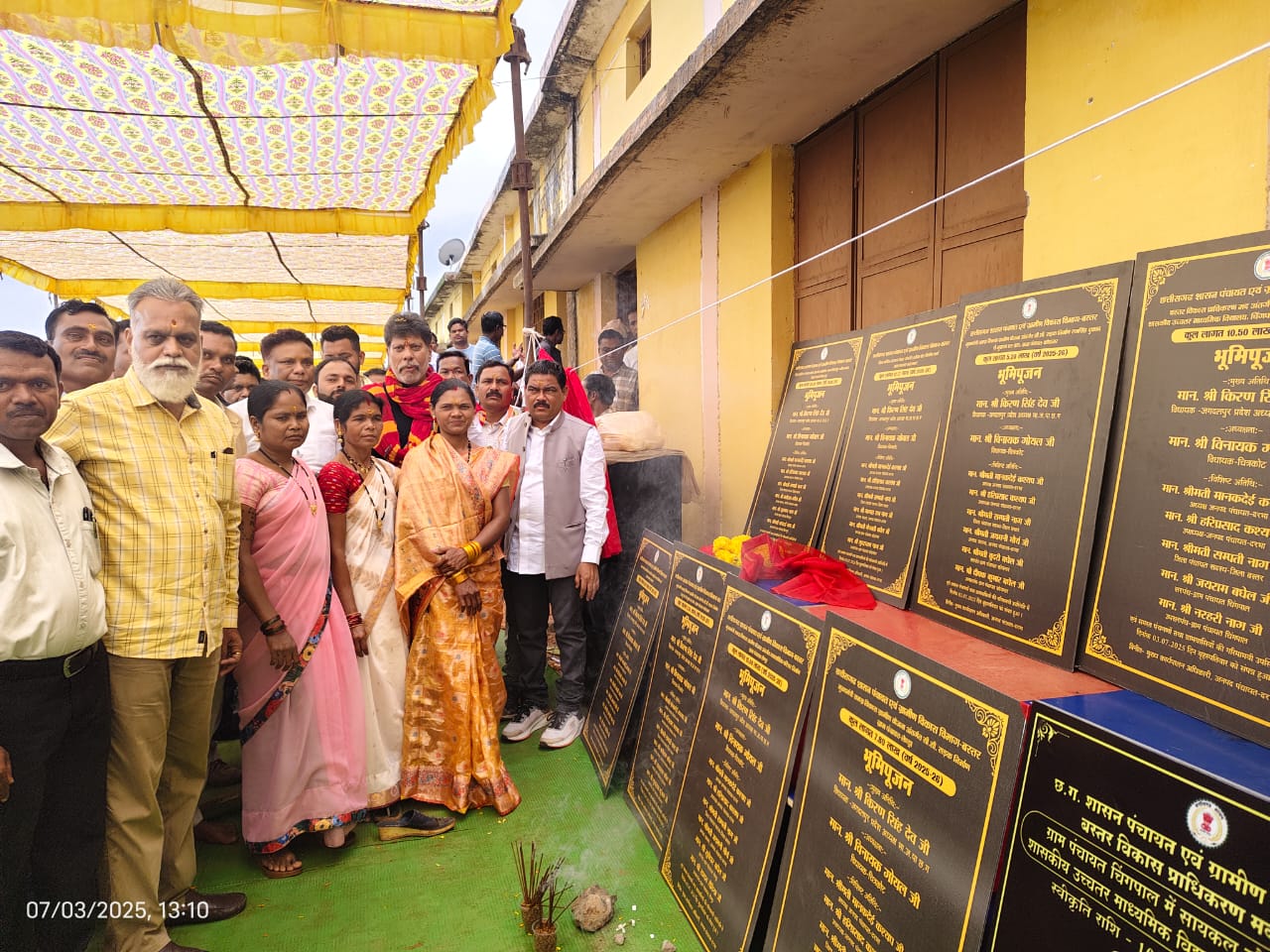 भूमिपूजन कार्यक्रम में भाजपा प्रदेश अध्यक्ष एवं विधायक श्री देव ने कहा कि क्षेत्र में विकास कार्य अनवरत जारी रहेगा। हमारी सरकार के नेतृत्व में प्रदेश में चौमुखी विकास कार्य हो रहे हैं। हमारी देवतुल्य जनता के मांग के अनुरूप हर क्षेत्र में विकास कार्य हो रहे हैं। प्रधानमंत्री नरेन्द्र मोदी व मुख्यमंत्री विष्णुदेव साय के नेतृत्व में लगातार विकास हो रहा है। प्रदेश के अंतिम व्यक्ति तक विकास पहुंचे, यह हमारा दायित्व है। शासन के जनकल्याणकारी योजनाओं का लाभ मिले, यह हमारा लक्ष्य है। श्री देव ने कहा जनता को मूलभूत सुविधाएं देना हमारा कर्तव्य है। इस पर हम खरा उतरने का कार्य कर रहे हैं। मुख्यमंत्री श्री साय के नेतृत्व में लगातार विकास की बयार बह रही है। क्षेत्र की जनता की मांग के अनुरूप आज सीसी सड़क निर्माण, व्यावसायिक परिसर, सायकल स्टैंड, प्रेक्षा भवन, नवीन शाला भवन निर्माण कार्यों का विधिवत भूमिपूजन किया गया। जनता को मूलभूत सुविधा सड़क, नाली, पेयजल, शिक्षा, विद्युत व अन्य सुविधाओं को पूरा करने का कार्य कर रहे हैं। जनता की मांग के अनुरूप क्षेत्र में विकास कार्य किया जायेगा। सभी कार्य समय-सीमा में गुणवत्ता के साथ किया जाएगा। क्षेत्र में लोगों की वर्षो पुरानी मांग पूरी हो रही है। विकास अनवरत जारी रहेगा।