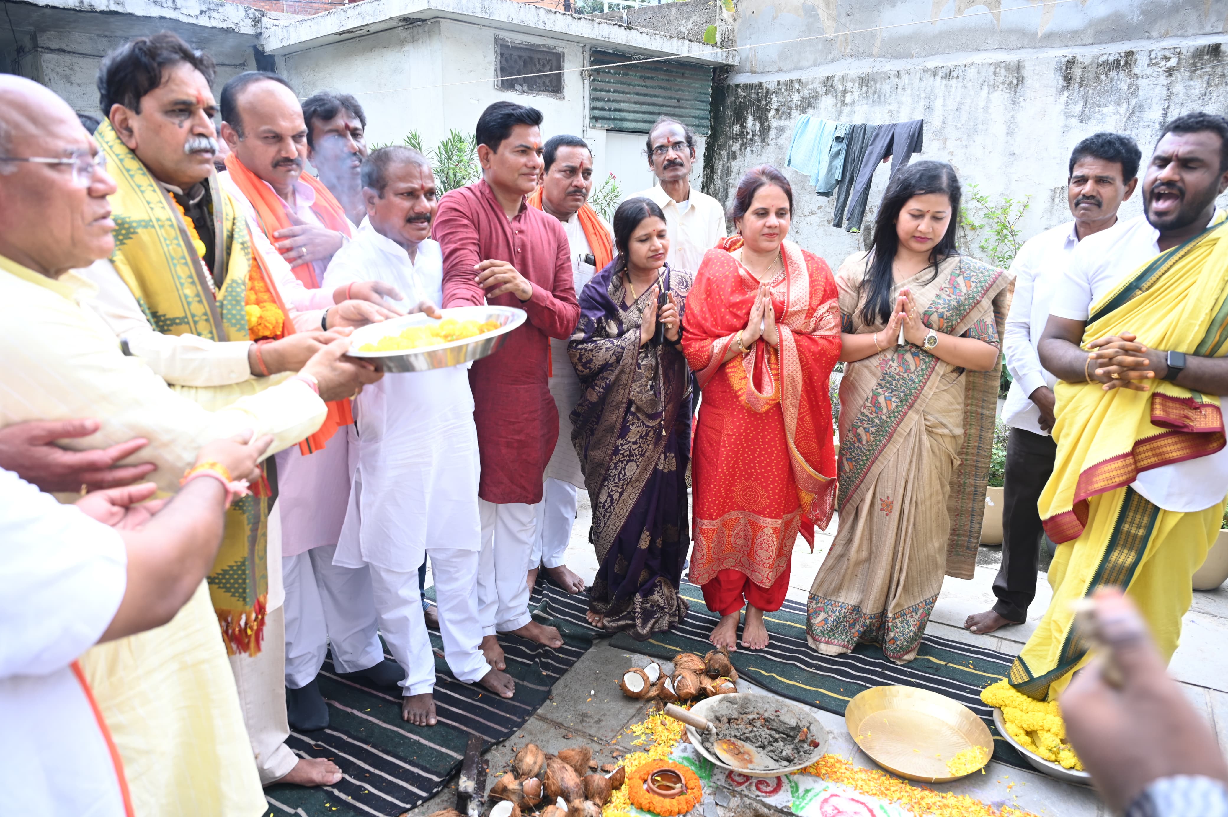 रायपुर/ रायपुर पश्चिम विधायक एवं प्रदेश के पूर्व केबिनेट मंत्री श्री राजेश मूणत और नगर पालिक निगम रायपुर की महापौर श्रीमती मीनल चौबे ने नगर निगम सभापति श्री सूर्यकांत राठौड़ लोककर्म विभाग अध्यक्ष श्री दीपक जायसवाल, एमआईसी सदस्य श्री नंदकिशोर साहू, जोन 1 अध्यक्ष श्री गज्जू साहू, बाल गंगाधर तिलक वार्ड कमांक 18 के पार्षद श्री सोहन लाल साहू, पार्षद डॉ. मनमोहन मनहरे, श्रीमती अंबिका साहू, श्री राजेश कुमार देवांगन, श्रीमती परमिला बल्लाराम साहू, पूर्व पार्षद श्रीमती कामिनी पुरूषोत्तम देवांगन, जोन 1 जोन कमिश्नर डॉ. दिव्या चंद्रवंशी, कार्यपालन अभियंता श्री डी.के. पैकरा, श्री गजाराम कंवर सहित वार्ड निवासी गणमान्यजनों, सामाजिक कार्यकर्ताओं, महिलाओं, नवयुवको, आमजनो की बडी संख्या में उपस्थिति के मध्य श्रीफल फोडकर और कुदाल चलाकर नगर निगम जोन 1 क्षेत्र में रायपुर पश्चिम विधानसभा क्षेत्र के अंतर्गत 25 लाख रू. की लागत से बालगंगा.तिलक वार्ड कमांक 18 के क्षेत्र में श्री बालाजी कल्याण मंदिर परिसर के पास नया सामुदायिक भवन निर्माण करने और इसी वार्ड के तहत एकता नगर गुढियारी में दक्षिण मुखी हनुमान मंदिर के पास नया सामुदायिक भवन और उद्यान विकास कार्य शीघ्र करने भूमिपूजन किया।
