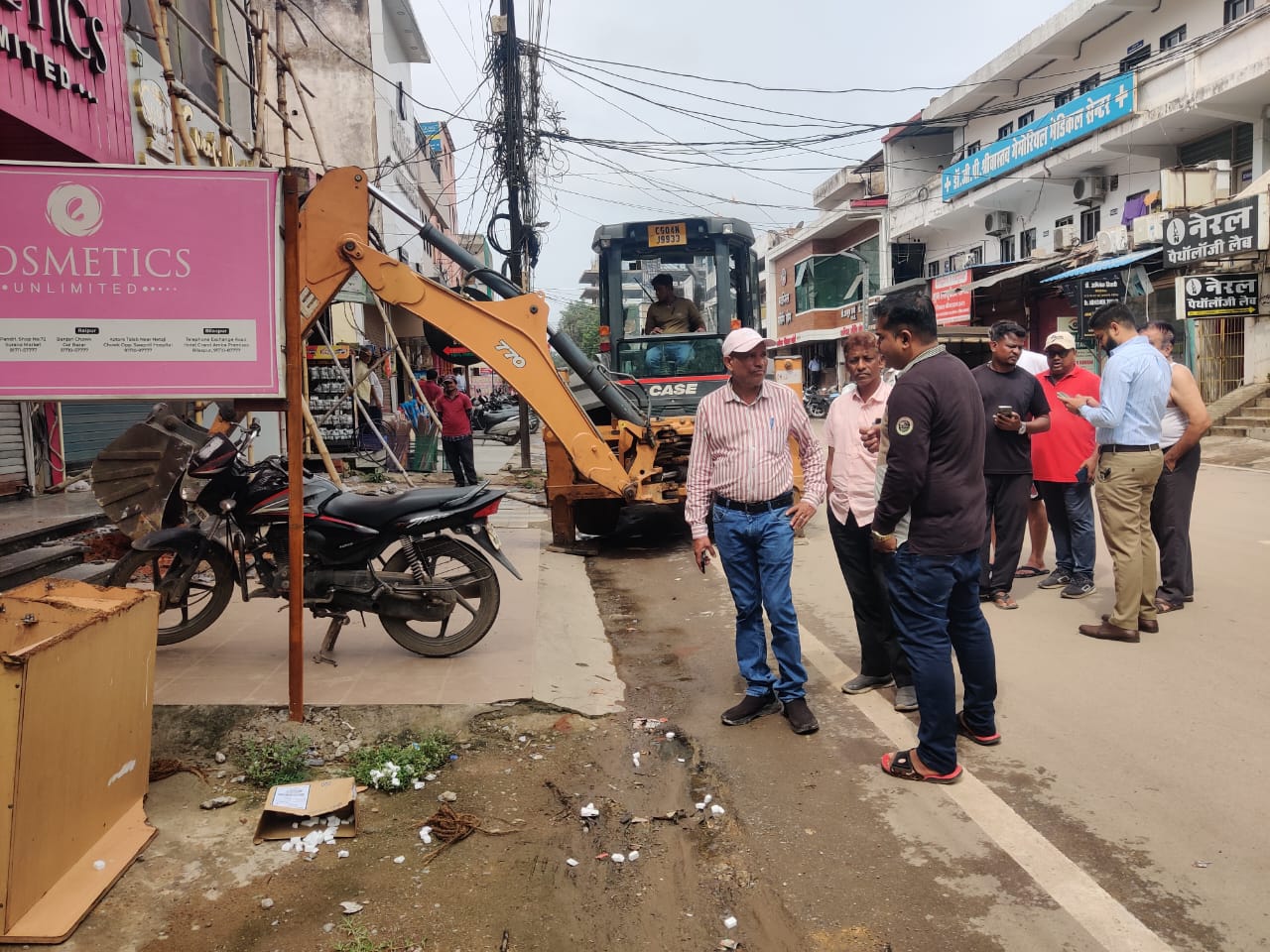 निगम ने सिविल लाईन वार्ड में नाली पर कब्जा कर बनाये गए 12 अवैध पाटों को तोड़कर सफाई करवाई