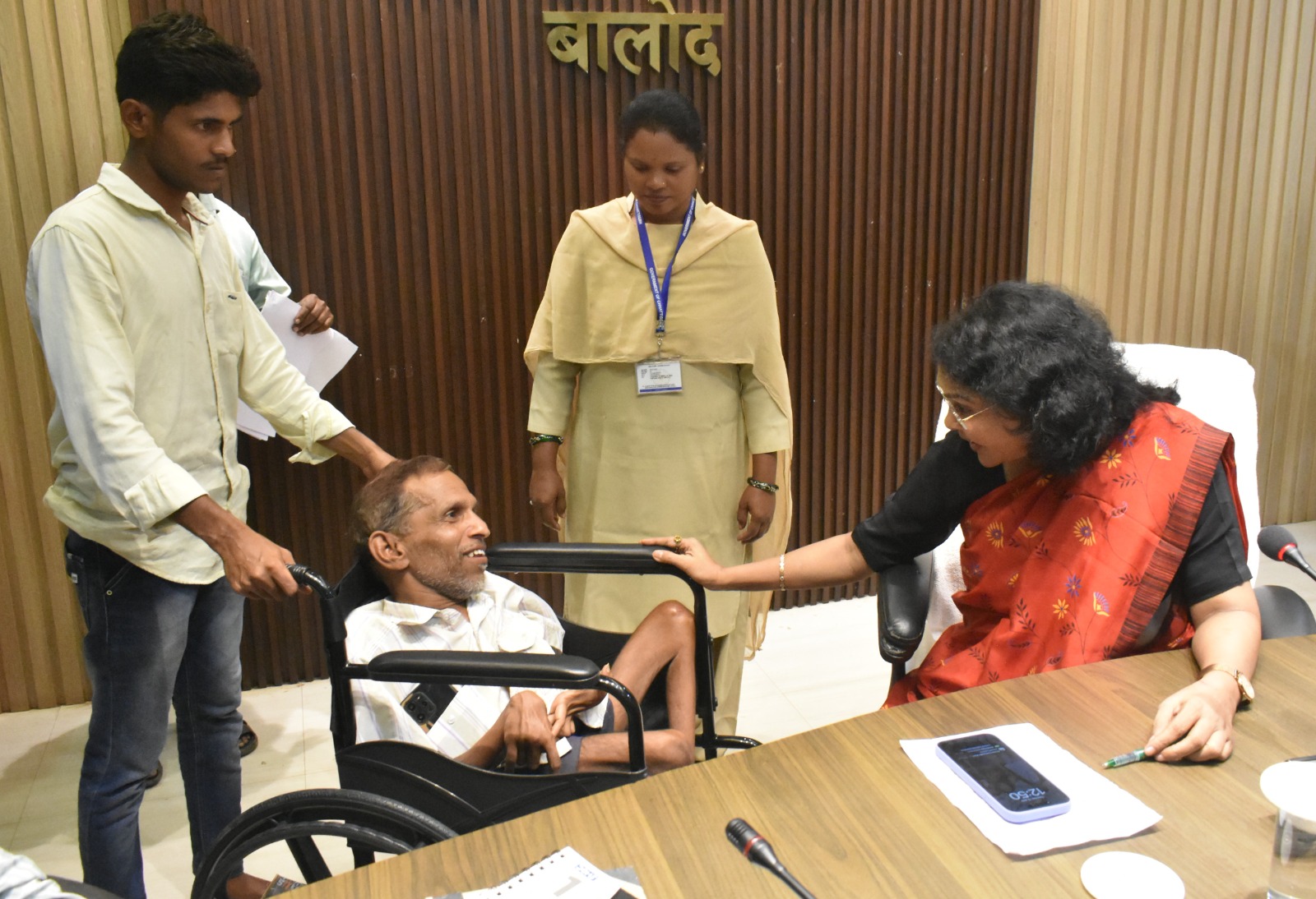 कलेक्टर श्रीमती मिश्रा ने उनके आवेदन पर त्वरित कार्रवाई करते हुए संबंधित अधिकारी को उन्हें तत्काल श्रवण यंत्र प्रदान करने निर्देशित किया गया। इसी तरह जनदर्शन में आज जिले के गुुरूर विकासखण्ड के ग्राम औरी निवासी दिव्यांग महेन्द्र कुमार ने कलेक्टर श्रीमती मिश्रा से अपनी शारीरिक परेशानियों को देखते हुए उन्हें व्हील चेयर प्रदान करने की मांग की। कलेक्टर श्रीमती मिश्रा ने उनके आवेदन पर त्वरित कार्रवाई करते हुए उन्हंे तत्काल व्हील चेयर प्रदान करने के निर्देश संबंधित अधिकारी को दिए। समाज कल्याण विभाग द्वारा दोनों ही लोगों के आवेदन पर त्वरित कार्रवाई करते हुए बुजुर्ग बालाराम को श्रवण यंत्र और दिव्यांग महेन्द्र कुमार को व्हील चेयर कलेक्टर श्रीमती मिश्रा की उपस्थिति में प्रदान किया गया। इस दौरान श्रीमती मिश्रा ने पूरी संवेदनशीलता के साथ दिव्यांग महेन्द्र कुमार से बातचीत कर उनका हालचाल पुछा। जिला प्रशासन के त्वरित कार्रवाई के फलस्वरूप दिव्यांग महेन्द्र कुमार एवं श्रवणबाधित बालाराम बहुत प्रसन्नचित आ रहे थे। उन्होंने संयुक्त जिला कार्यालय में आयोजित होने वाली कलेक्टर जनदर्शन कार्यक्रम की भूरी-भूरी सराहना करते हुए अपने जैसे अनेक लोगों के लिए अत्यंत लाभकारी बताया।