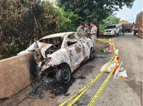 कांकेर जिले में टक्कर के बाद कार में आग लगने से चार लोगों की मौत, दो घायल