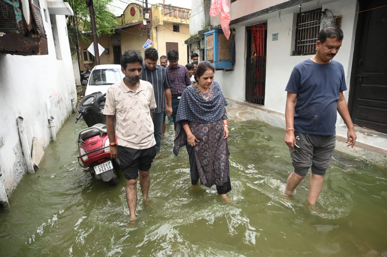 महापौर श्रीमती मीनल और आयुक्त ने लगातार बारिश से हुए जलभराव क्षेत्रों का पार्षद बब्बी, जयश्री सहित प्रत्यक्ष किया निरीक्षण