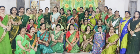 रायपुर। हरे रंग की साड़ी, माथे पर हरी बिंदिया और पैरों के सेंडल का रंग भी हरा। यानी सिर से लेकर पांव तक ‘सावन’ को परिभाषित करते रंग के ड्रेस कोड के साथ महाराष्ट्र मंडल के शंकर नगर केंद्र की महिलाएं शंकर नगर स्थित बाल वाचनालय में सावन उत्सव मनाने पहुंचीं। "सावन का महीना, पवन करे शोर", "पड़ आया सावन बड़ा मनभावन", "सावन में भावन लागे भोले की नगरिया" और "अंखियां हैं प्यासी प्यासी" जैसे सावन के गीतों का गायन कर महिलाओं ने कार्यक्रम के उत्साह को दोगुना कर दिया।