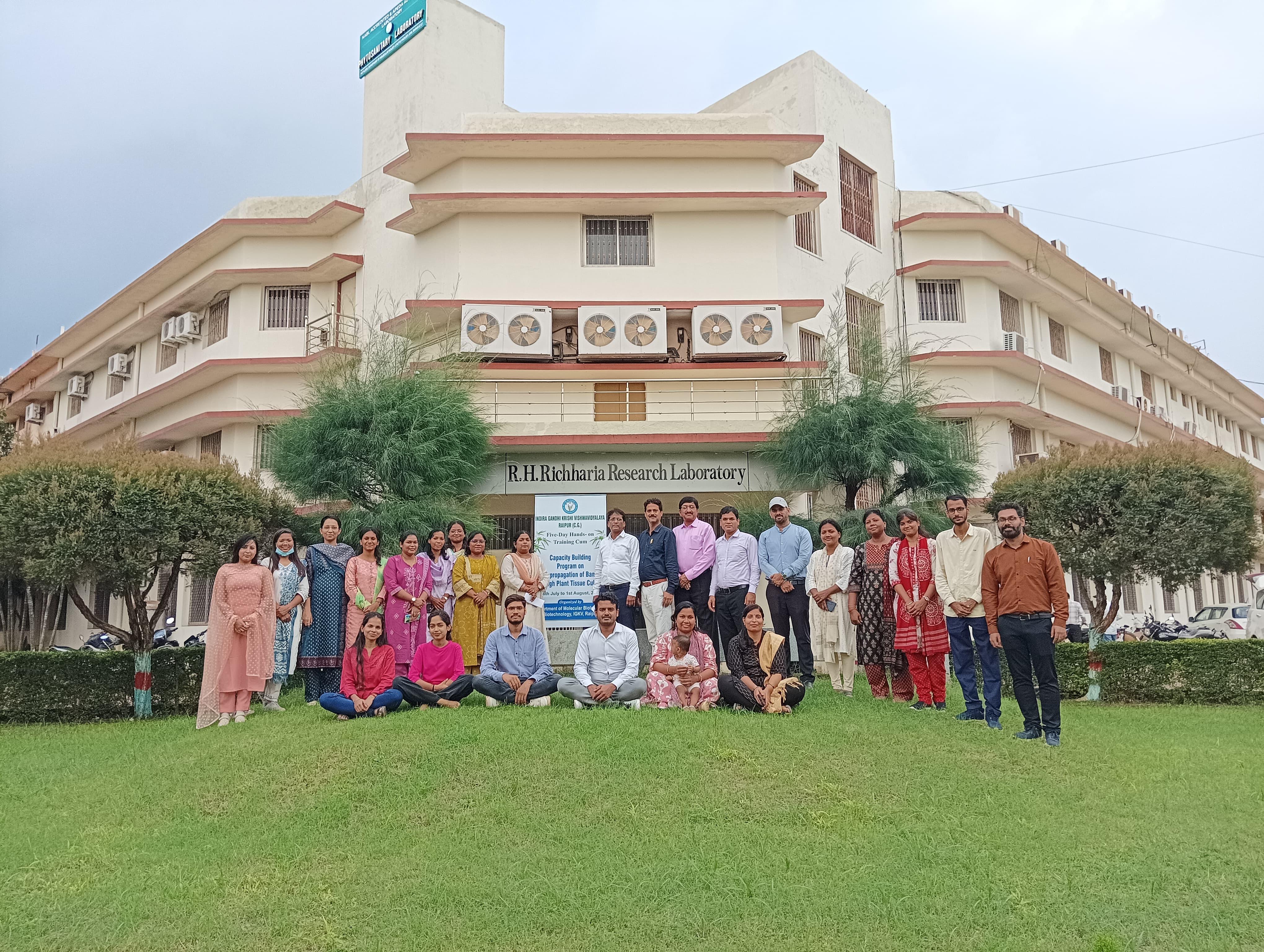 रायपुर। इंदिरा गांधी कृषि विश्वविद्यालय रायपुर के आणविक जीवविज्ञान एवं जैवप्रौद्योगिकी विभाग में आयोजित पाँच दिवसीय “बाँस के टिशू कल्चर के माध्यम से सूक्ष्मप्रजनन पर क्षमता निर्माण प्रशिक्षण कार्यक्रम” का आज यहां समापन हुआ। समापन समारोह के मुख्य अतिथि इंदिरा गांधी कृषि विश्व विद्यालय के कुलपति डॉ गिरीश चंदेल थे। समारोह की अध्यक्षता कृषि महाविद्यालय रायपुर की अधिष्ठाता डॉ आरती गुहे ने की।