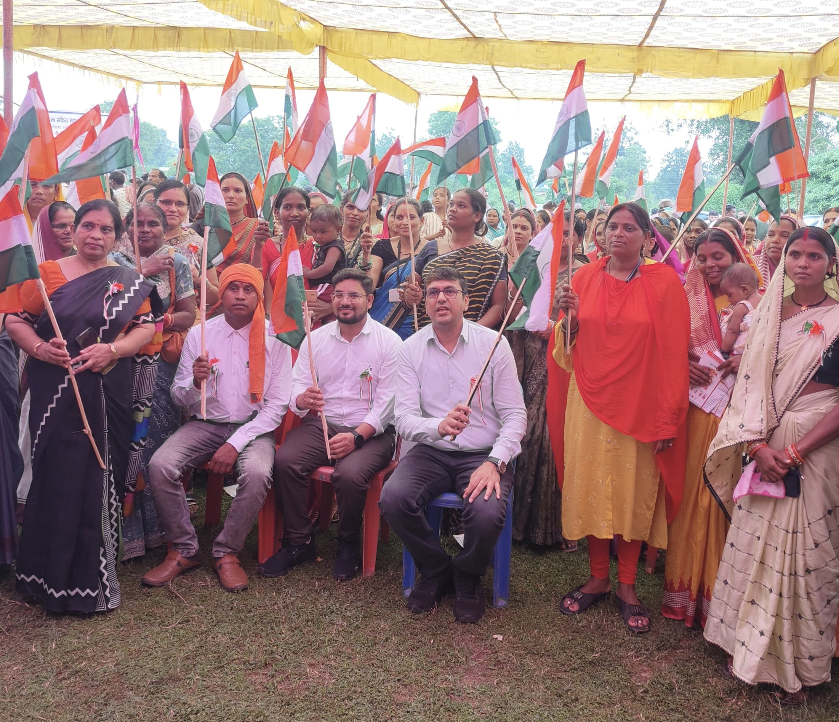 आमागोहान में आयोजित जनसमस्या निवारण शिविर में जिला पंचायत सीईओ श्री संदीप अग्रवाल ने बिहान स्व-सहायता समूह की दीदियों और स्थानीय जनप्रतिनिधियों के साथ तिरंगा लहराकर अभियान की औपचारिक शुरुआत की। उन्होंने ग्रामीणों को संबोधित करते हुए कहा कि तिरंगा केवल एक ध्वज नहीं, बल्कि हमारी आज़ादी का प्रतीक है, जिसे हर घर पर फहराकर हम अपने देश के प्रति कृतज्ञता और समर्पण व्यक्त कर सकते हैं।