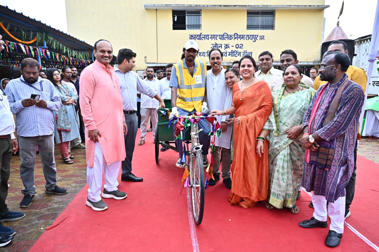 रायपुर/ नगर पालिक निगम रायपुर के जोन 2 अंतर्गत इंदिरा गांधी वार्ड क्रमांक 27 के पार्षद एव निगम राजस्व विभाग अध्यक्ष श्री अवतार भारती बागल ने वार्ड 27 के बडे व्यवसायिक क्षेत्र वाले वार्ड को स्वच्छ रखने अभिनव पहल की है। वार्ड पार्षद व एमआईसी सदस्य ने वार्ड 27. की सफाई व्यवस्था सुधारने एव बाज़ारो को स्वच्छ रखने पार्षद निधि मद से 4 नये सफाई रिक्शे कय करवाकर आज उन 4 नये रिक्शो पर सफाई मित्र कर्मचारियों को वार्ड के बाजार क्षेत्र मे नगर निगम जोन 2 कार्यालय परिसर से नगर निगम की महापौर श्रीमती मीनल चौबे, समापति श्री सूर्यकांत राठौड, आयुक्त श्री विश्वदीप सहित वित्त विभाग अध्यक्ष श्री महेन्द्र खोडियार, स्वास्थ्य विभाग अध्यक्ष श्रीमती गायत्री सुनील चद्राकर वार्ड पार्षद श्रीमती रामहीन कुरे, श्री खगपति सोनी, अपर आयुक्त स्वास्थ्य श्री विनोद पाण्डेय, स्वास्थ्य अधिकारी श्रीमती प्रीति सिंह, जोन 2 जोन कमिश्नर डॉ आरके डोगरे कार्यपालन अभियंता श्री पी.डी घृतलहरे, जोन स्वास्थ्य अधिकारी श्री रवि लावनिया की उपस्थिति में स्वाना करवाया। इंदिरा गांधी वार्ड पार्षद एवं राजस्व विभाग अध्यक्ष श्री अवतार भारती बागल ने विश्वास व्यक्त किया कि नये 4 सफाई रिक्शे आने से नगर निगम जोन 2 के इंदिरा गांधी वार्ड के व्यवसायिक क्षेत्रो और बाजार की सफाई व्यवस्था में सुधार आयेगा और स्वच्छ वार्ड की परिकल्पना शीघ्र महापौर श्रीमती मीनल चौबे एव सगापति श्री सूर्यकात राठौड के नेतृत्व में वार्डवासियो एवं व्यापारियों के सहयोग से साकार होगी।