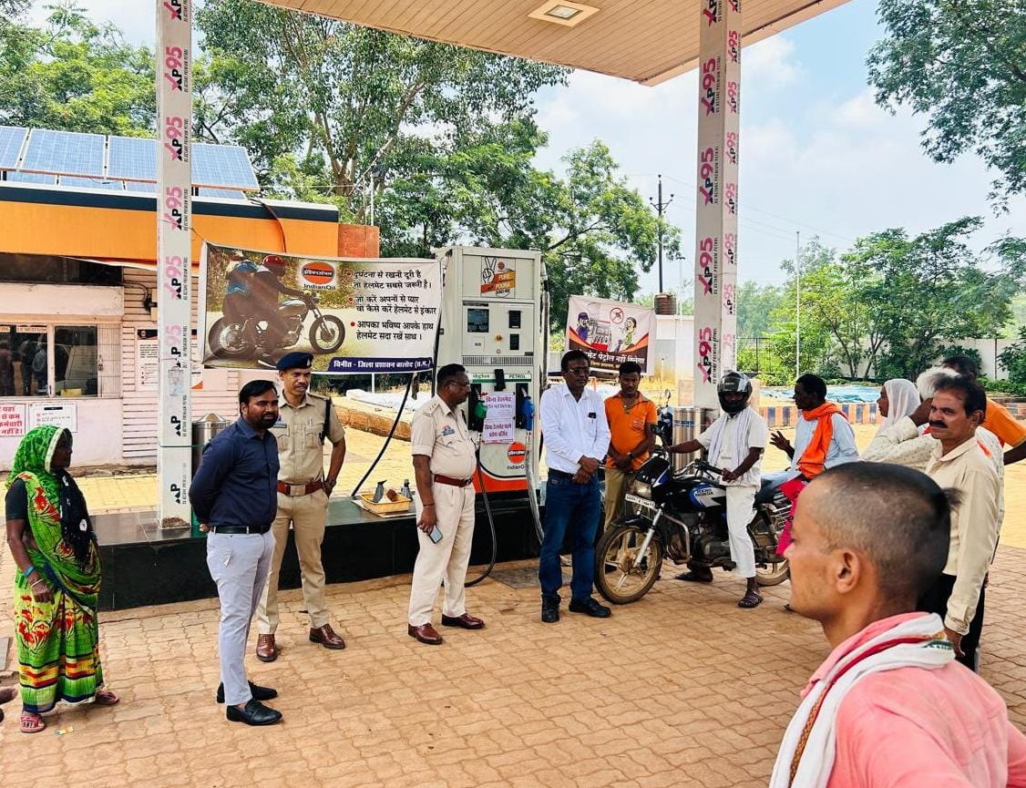 पेट्रोल पंपों में दोपहिया वाहन चालकों को अनिवार्य रूप से हेलमेट का उपयोग करने की दी जा दी समझाईश