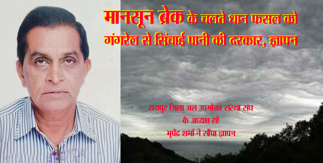 मानसून ब्रेक की स्थिति के चलते धान फसल को गंगरेल से सिंचाई पानी की दरकार, ज्ञापन