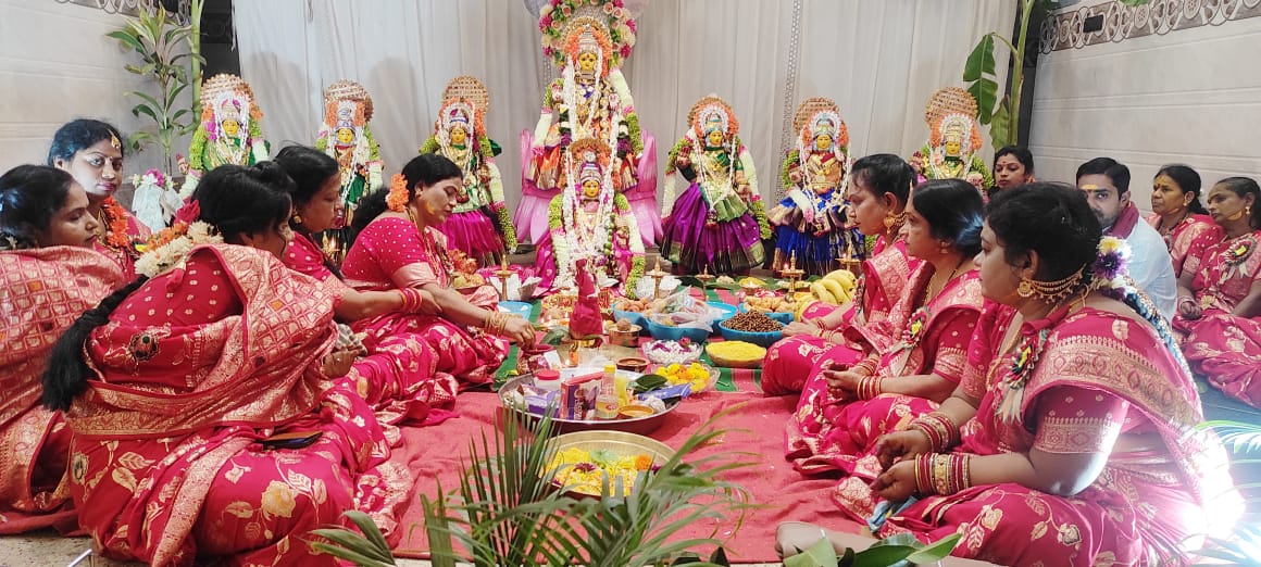 तेलगा महिला समाज ने वरलक्ष्मी का व्रत रखकर घर में पदार्पण का किया आह्वान