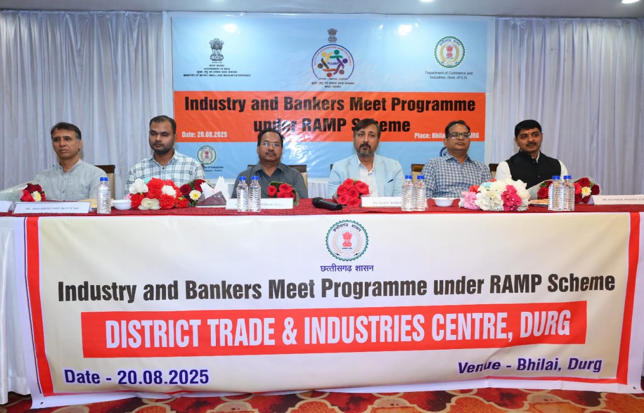 दुर्ग. भारत सरकार की रैम्प योजना (रेजिंग एण्ड एक्सलेरेटिंग एमएसएमई परफामेंस) के अंतर्गत जिला व्यापार एवं उद्योग केंद्र, दुर्ग के द्वारा होटल अमित पार्क इंटरनेशनल, सुपेला भिलाई दुर्ग में “उद्योग एवं बैंकर्स कनेक्ट कार्यक्रम” का आयोजन संपन्न हुआ। कार्यक्रम में विभिन्न बैंकों के 15 प्रतिनिधियों एवं 140 प्रतिभागियों/उद्योगपतियों/चार्टेड अकाउंटेंट्स ने भाग लिया। उक्त कार्यक्रम श्री अनंत माधव, (क्षेत्रीय प्रबंधक, बैंक ऑफ़ बड़ोदा), उद्योग संचालनलय के उपसंचालक श्री जागेश्वर साहू, जिला अग्रणी बैंक प्रबंधक श्री संजय गर्ग, चौम्बर ऑफ़ कॉमर्स के प्रदेश महामंत्री श्री अजय भसीन, आईसीएआई भिलाई के सीए श्री प्रतिक अग्रवाल की गरिमामयी उपस्थिति में सम्पन्न हुआ। इस अवसर पर जिले के सूक्ष्म, लघु एवं मध्यम उद्यम (एमएसएमई), महिला उद्यमी, प्रधानमंत्री सूक्ष्म खाद्य प्रसंस्करण उद्यम उन्नयन योजना, प्रधानमंत्री रोजगार सृजन कार्यक्रम के हितग्राहियों तथा स्टार्टअप्स से संबंधित प्रतिभागियों की उल्लेखनीय उपस्थिति रही। कार्यक्रम में स्वागत उद्बोधन एवं परिचय मुख्य महाप्रबंधक, जिला उद्योग केंद्र, दुर्ग द्वारा दिया गया।