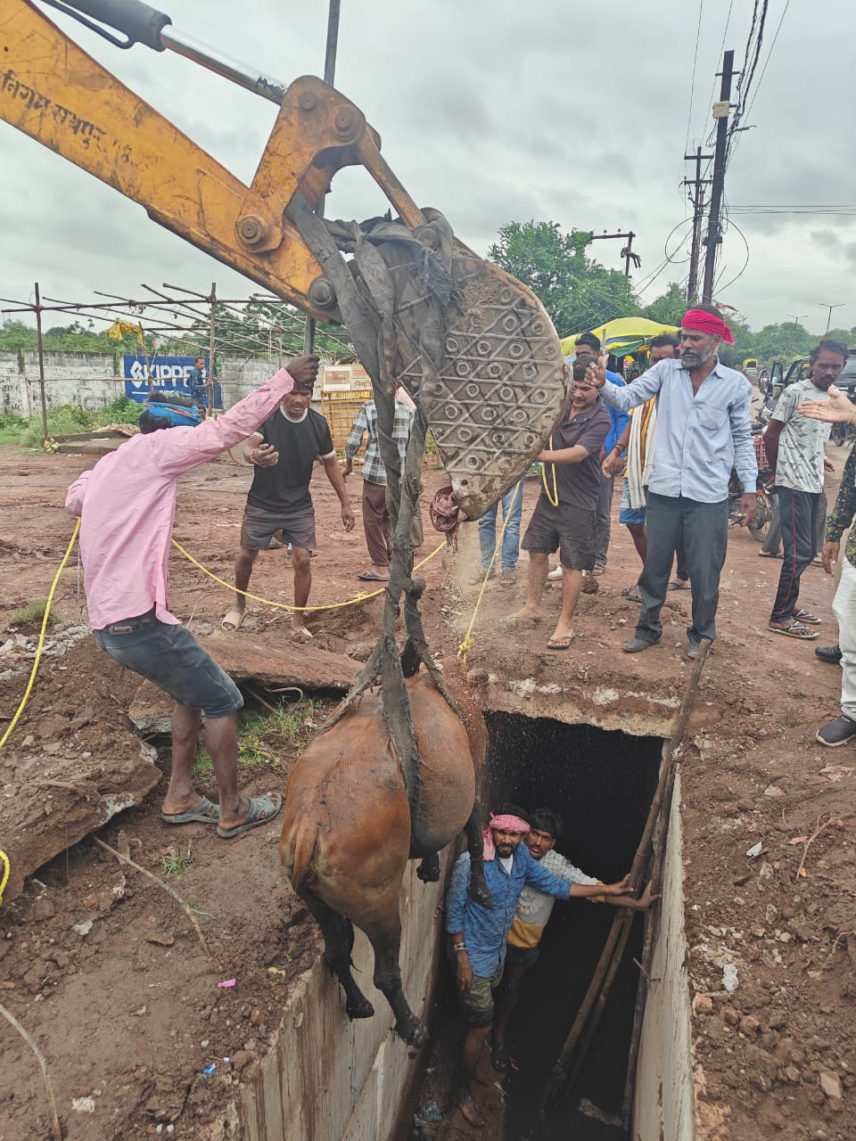 नगर निगम मुख्यालय स्वास्थ्य विभाग और नगर पालिक निगम जोन 8 स्वास्थ्य विभाग की टीम द्वारा चन्दनडीह में बड़े नाले के भीतर अचानक गिरी गाय को जेसीबी मशीन और बड़ी रस्सी की सहायता से सतत निरन्तर प्रयास करते हुए सुरक्षित बाहर निकाल लिया. गाय को चंदनडीह के बड़े नाले के भीतर से सुरक्षित बाहर निकाले जाने पर वहाँ के रहवासियों ने प्रसन्नता व्यक्त करते हुए नगर निगम मुख्यालय स्वास्थ्य विभाग और नगर निगम जोन 8 स्वास्थ्य विभाग टीम के उक्त कार्य की सराहना की.