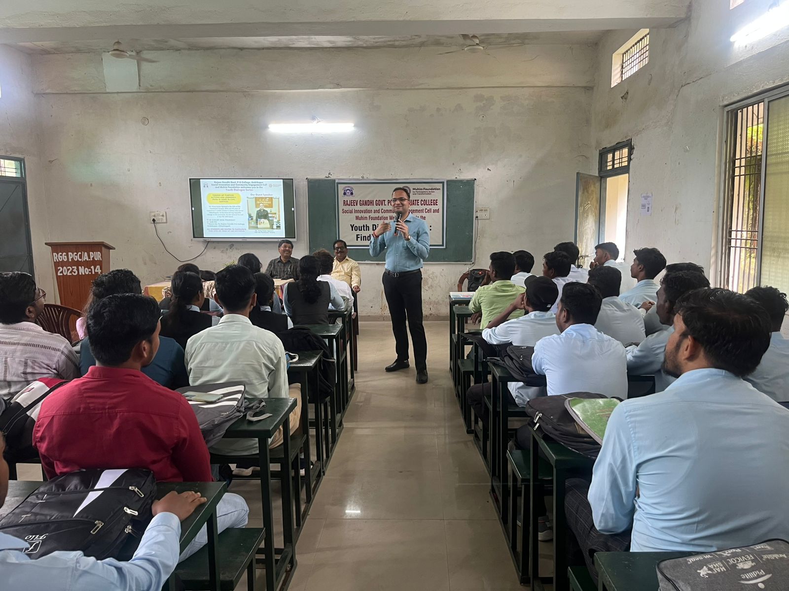 अम्बिकापुर/ राजीव गांधी शासकीय स्नातकोत्तर महाविद्यालय, अम्बिकापुर के सोशल इनोवेशन एंड कम्युनिटी एंगेजमेंट सेल एवं मुहिम फाउंडेशन के संयुक्त तत्वावधान में “युवा संवाद श्रृंखला” का शुभारंभ गुरुवार को महाविद्यालय परिसर में किया गया। इस श्रृंखला की पहली कड़ी का विषय “Finding My Purpose” रहा।