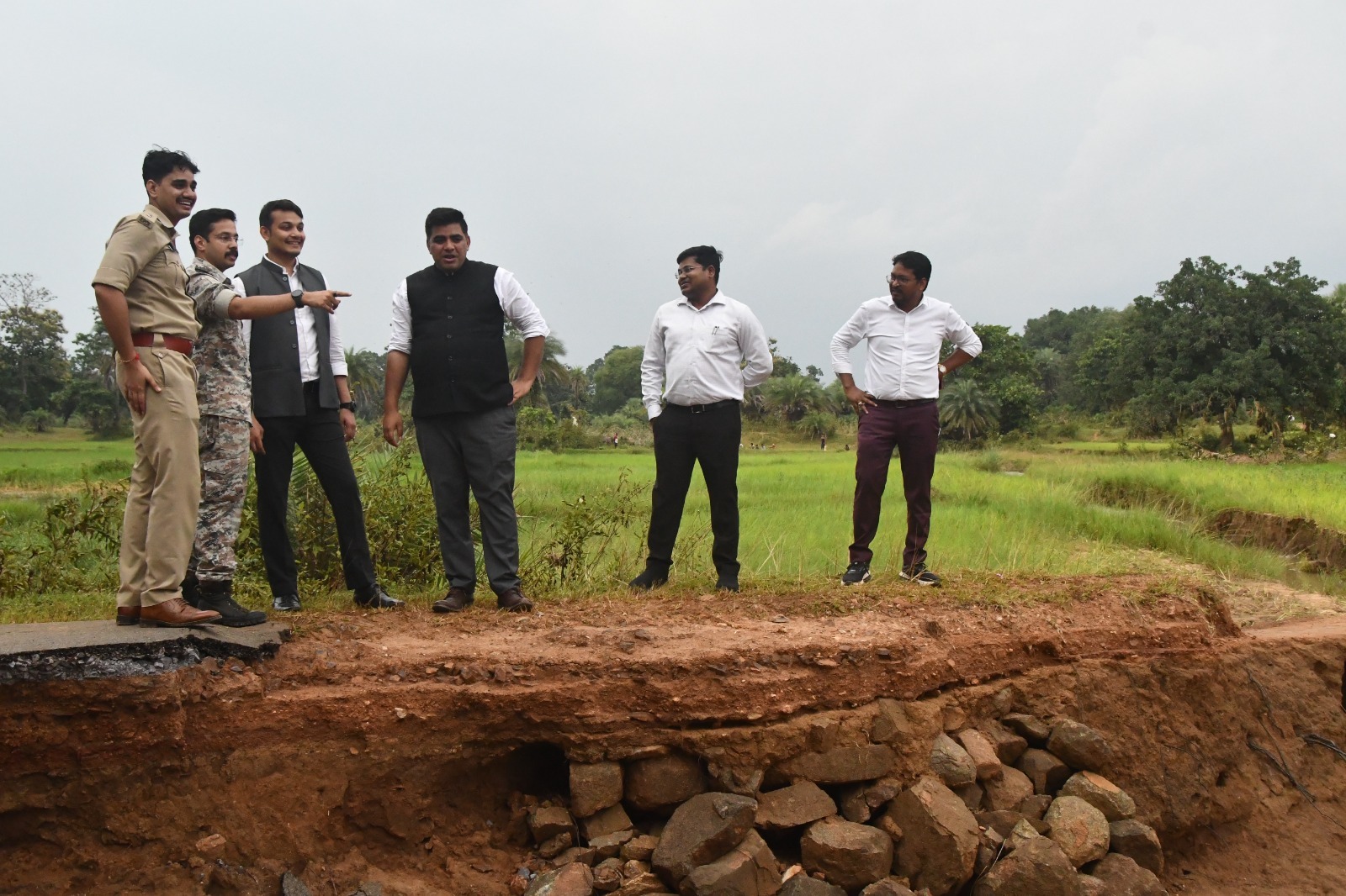 फलस्वरूप 31 अगस्त तक विभाग द्वारा आवाजाही हेतु वैकल्पिक मरम्मत कार्य पूर्ण कर लिया गया। जिसका कलेक्टर द्वारा स्थल निरीक्षण कर विभागीय अधिकारियों को क्षतिग्रस्त पुल में पर्याप्त मात्रा में मिट्टी एवं बोल्डर डालकर मजबूती देने हेतु दिशा निर्देश दिए गए। ताकि भारी वाहन भी सुरक्षित रूप से गुजर सकें। इसके साथ ही कलेक्टर ने देर शाम तक बारसूर से नारायणपुर जोड़ने वाले मांडर नाले एवं ग्राम बालपेट के क्षतिग्रस्त पुल के निर्माण कार्य का जायजा लेते हुए इसके भी मरम्मती कार्य को तेजी से पूर्ण करने के निर्देश दिए। इस दौरान पुलिस अधीक्षक श्री गौरव राय, जिला पंचायत सीईओ श्री जयंत नाहटा, अतिरिक्त पुलिस अधीक्षक श्री उदित पुष्कर सहित अन्य अधिकारी मौजूद रहे।