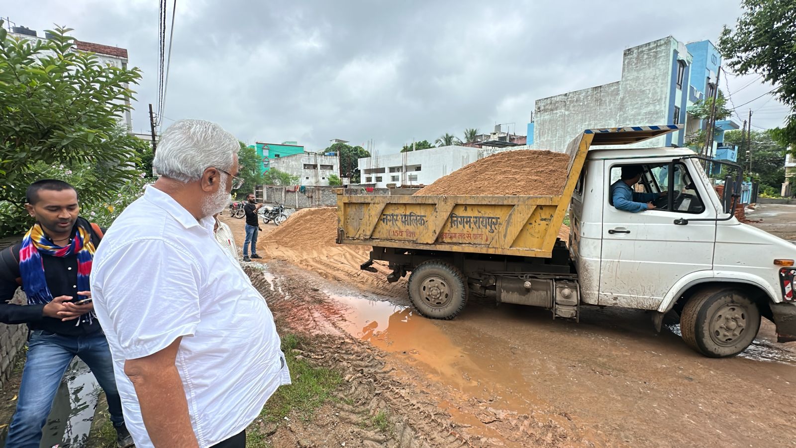 रायपुर/ नगर पालिक निगम रायपुर में प्राप्त जनशिकायत को तत्काल संज्ञान में लेते हुए नगर निगम आयुक्त श्री विश्वदीप द्वारा वस्तुस्थिति की जानकारी लेकर नियमानुसार कार्यवाही करने दिए गए निर्देश पर नगर निगम जोन 9 जोन कमिश्नर श्री संतोष पाण्डेय के नेतृत्व और कार्यपालन अभियंता श्री शरद ध्रुव, सहायक अभियंता श्री सैयद जोहेब, उप अभियंता श्री अतुल बंसल, स्वच्छता निरीक्षक श्री भोला तिवारी की उपस्थिति में नगर निगम जोन 9 अंतर्गत लालबहादुर शास्त्री वार्ड क्रमांक 51 के अंतर्गत साईंनगर जोरा में सड़क पर भवन निर्माण सामग्री रेत को डालकर सड़क अवरुद्ध किये जाने की जनशिकायत पर स्थल निरीक्षण कर वस्तुस्थिति की जानकारी ली.