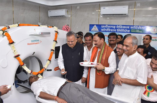 राजनांदगांव । विधानसभा अध्यक्ष डॉ. रमन सिंह तथा लोक स्वास्थ्य एवं परिवार कल्याण, चिकित्सा शिक्षा विभाग मंत्री श्री श्याम बिहारी जायसवाल ने आज भारतरत्न स्वर्गीय श्री अटल बिहारी वाजपेयी स्मृति चिकित्सा महाविद्यालय एवं संबद्ध चिकित्सालय राजनांदगांव परिसर में 12 करोड़ 5 लाख 92 हजार 500 रूपए की लागत के सीटी स्कैन मशीन का लोकार्पण किया। उल्लेखनीय है कि शासकीय चिकित्सा महाविद्यालय राजनांदगांव परिसर में सीटी स्कैन मशीन लगने से जनसामान्य के लिए स्वास्थ्य सुविधाओं में बढ़ोत्तरी होगी। इस मशीन से मरीजों को त्वरित एवं सटीक जांच सुविधा उपलब्ध कराई जाएगी। इस अवसर पर विधानसभा अध्यक्ष एवं स्वास्थ्य मंत्री ने विभिन्न विभागों द्वारा लगाए गए मॉडल का अवलोकन किया। जिसमें तुरंत ओपीडी के लिए ऑनलाईन रजिस्ट्रेशन के संबंध में जानकारी दी गई। इसके साथ ही सीटी स्कैन मशीन, एक्स-रे मशीन, सोनोग्राफी मशीन, स्त्री रोग विशेषज्ञ एवं अन्य विभाग द्वारा रूचिकर मॉडल के माध्यम से नागरिकों को जानकारी प्रदान की गई।