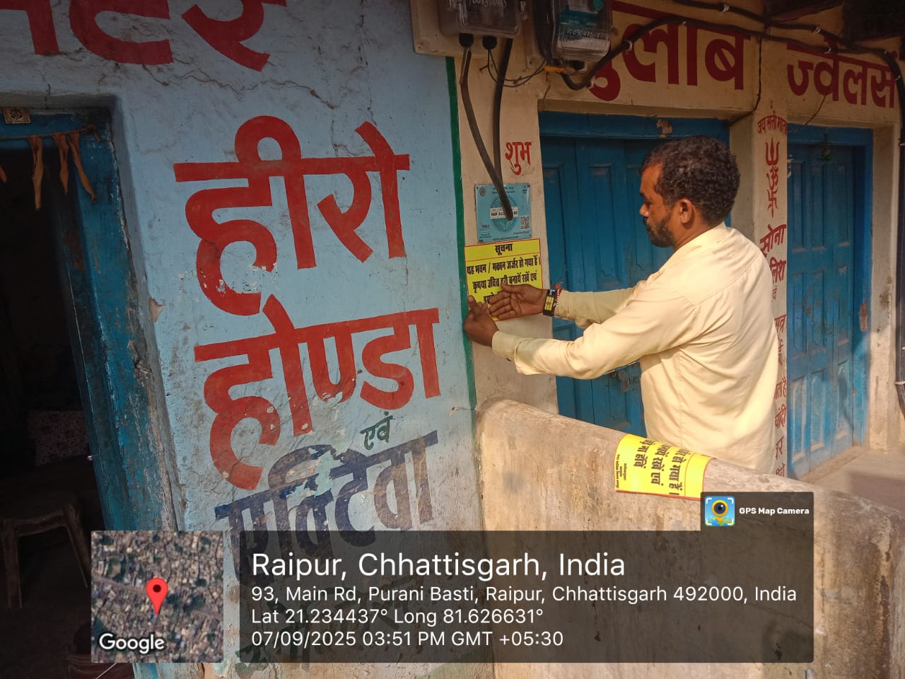 रायपुर - रायपुर नगर पालिक निगम रायपुर के आयुक्त श्री विश्वदीप के आदेशानुसार और नगर निवेशक श्री आभाष मिश्रा के निर्देशानुसार नगर निगम मुख्यालय नगर निवेश उड़नदस्ता और नगर निगम जोन 4 नगर निवेश विभाग की टीम द्वारा दिनांक 8 सितम्बर 2025 की रात्रि में राजधानी शहर रायपुर के विभिन्न मुख्य मार्गो से निकलने जा रही श्रीगणेश मूर्ति विसर्जन चल झांकी के निर्धारित रूट मार्ग में सदर बाजार, सत्ती बाजार, कंकाली तालाब, पुरानी बस्ती, अवधियापारा, अमीनपारा, बैजनाथपारा मार्ग में स्थित विभिन्न पुराने /जर्जर भवनों के स्वामियों को नोटिस जारी कर जर्जर / पुराने भवनों की तत्काल मरम्मत करवाने अथवा उन्हें हटाने के निर्देश दिए हैँ और 8 सितम्बर को रात्रि में निकलने वाली श्रीगणेश विसर्जन चल झांकी रूट मार्ग पर स्थित सभी पुराने/ जर्जर भवनों में स्टीकर लगाकर पुराने / जर्जर भवन से उचित दूरी बनाये रखने और उसके नीचे खड़े ना होने की नगर निवेश विभाग ने नागरिकों से अपील की है.
