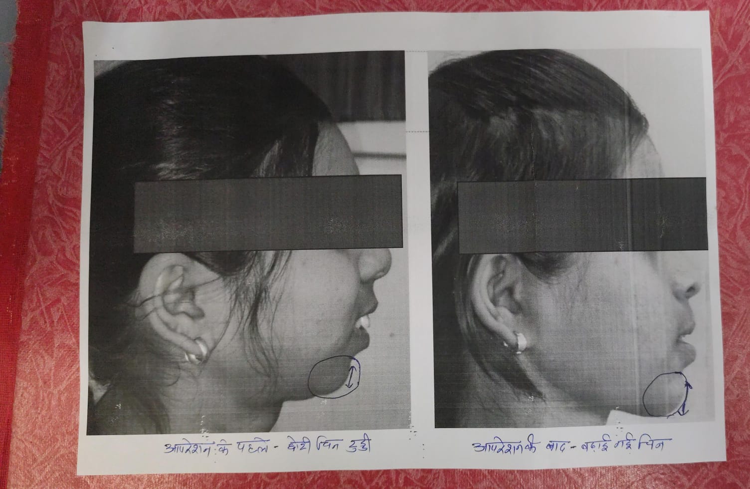 बिलासपुर . मरीज नीता कुमारी (बदला हुआ नाम) उम्र 20 वर्ष का दाएं जबड़े में चोट के कारण 10 वर्ष पहले अविकसित रह गया तथा मुँह खुलना भी बंद हो गया और खाने पीने की परेशानी लेकर आई तथा नीचे और ऊपर के जबड़े का टेढ़ा होता चला गया और दाँतों का विन्यास (Occlusion) भी बिगड़ गया तथा चेहरा असंतुलित होने के कारण मरीज हीन भावना से ग्रसित होने लगी थी। घर से बाहर निकलना भी बंद कर दी थी।