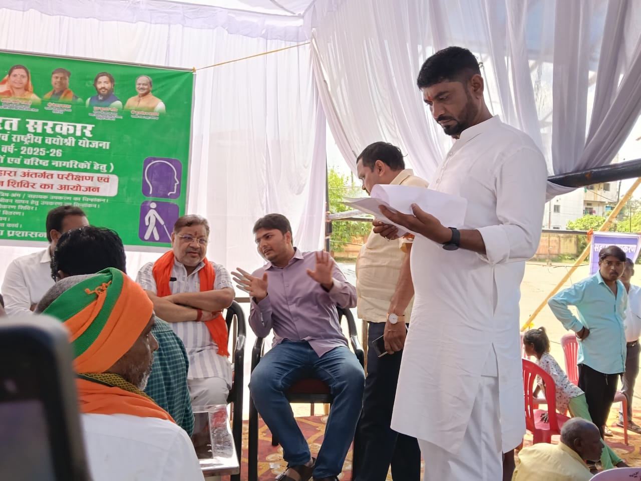रायपुर/ भारत सरकार की एडिप एवं राष्ट्रीय वयोश्री योजना वर्ष 2025-26 दिव्यांगजनों एवं वरिष्ठ नागरिकों हेतु प्रोजेक्ट सहारा अंतर्गत परीक्षण एवं मूल्यांकन शिविर का आयोजन रायपुर जिला प्रशासन समाज कल्याण विभाग द्वारा रायपुर नगर पालिक निगम के सरदार बलबीर सिंह जुनेजा इंडोर स्टेडियम में रखा गया. आयोजन में रायपुर दक्षिण विधायक श्री सुनील सोनी सम्मिलित होने पहुँचे, तो उनका मंच पर नगर निगम जोन 4 जोन अध्यक्ष श्री मुरली शर्मा, जोन 5 जोन अध्यक्ष श्री अम्बर अग्रवाल, जोन 6 जोन अध्यक्ष श्री बद्री प्रसाद गुप्ता की उपस्थिति में नगर निगम आयुक्त श्री विश्वदीप ने बुके प्रदत्त कर आत्मीय स्वागत किया. इंडोर स्टेडियम के शिविर में दिव्यांगजनों हेतु कृत्रिम अंग और उपकरण का चिन्हाँकन और वरिष्ठ नागरिकों हेतु जीवन यापन के लिए उपकरण का चिन्हाँकन, यूडीआईडी पंजीयन एवं वितरण, आयुष्मान कार्ड पंजीयन और राशन कार्ड से सम्बंधित कार्य किये गए.