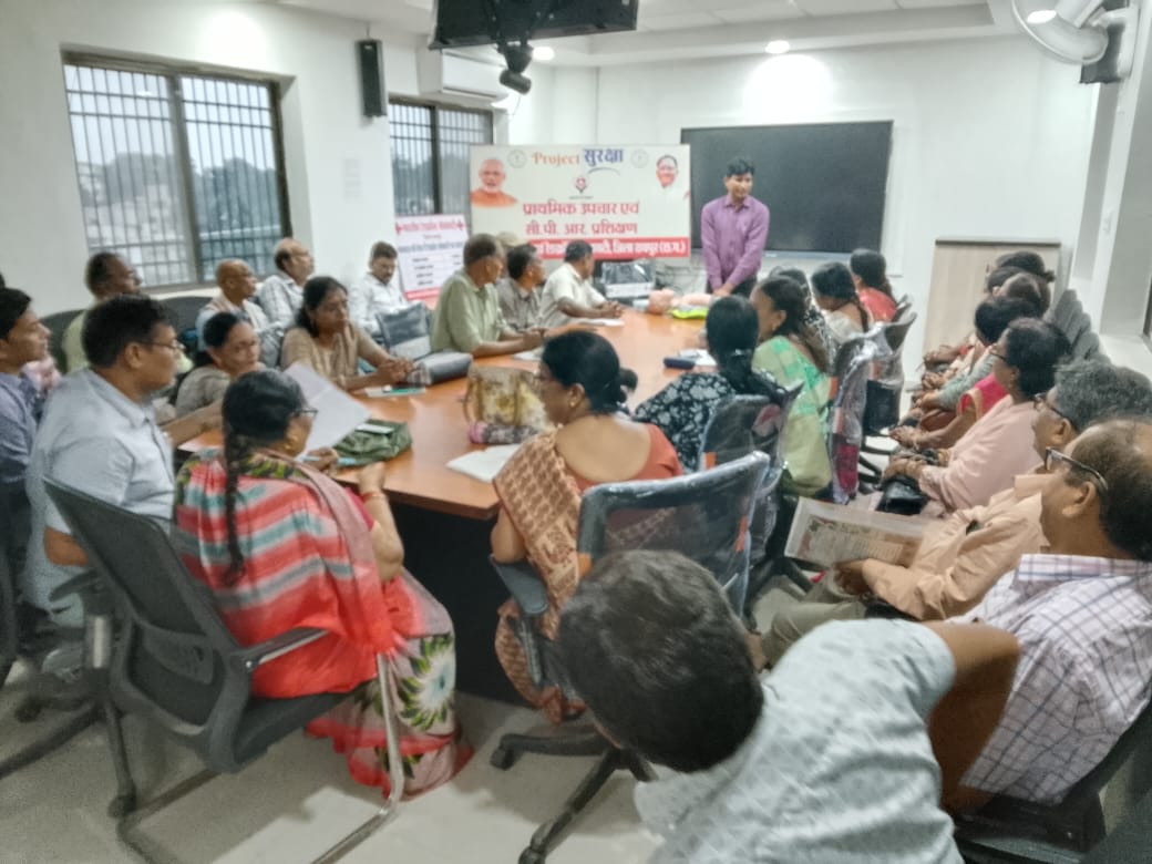 रायपुर, /मुख्यमंत्री श्री विष्णुदेव साय के निर्देशन में जिला प्रशासन रायपुर एवं रेड क्रॉस सोसाइटी, जिला शाखा रायपुर के संयुक्त प्रयास से “प्रोजेक्ट सुरक्षा” कार्यक्रम के अंतर्गत एक महत्वपूर्ण जीवनरक्षक प्रशिक्षण कार्यक्रम आयोजित किया गया। कलेक्टर डॉ गौरव सिंह के मार्गदर्शन में यह प्रशिक्षण संपन्न हुआ। प्रथम बैच में गवर्मेंट हॉयर सेकेंडरी स्कूल बोरियाकला रायपुर में 205 स्टूडेंट्स और शिक्षकों को प्रशिक्षण दिया गया, द्वितीय बैच में मल्टीलेवल पार्किंग कलेक्ट्रेट, चौथा फ्लोर रायपुर में विभिन्न विभागों के 34 अधिकारी एवं कर्मचारियों को प्राथमिक उपचार किट के उपयोग और सीपीआर तकनीक का प्रशिक्षण प्रदान किया गया।रेडक्रॉस सोसाइटी, जिला शाखा रायपुर के सहायक प्रबंधक श्री कुर्रे ने प्रशिक्षण का संचालन करते हुए आपातकालीन परिस्थितियों में जीवन रक्षक तकनीकों की महत्ता को समझाया। उन्होंने सीपीआर की विस्तृत विधि का व्यवहारिक प्रदर्शन कर यह बताया कि कैसे सांस रुकने या हृदय गति बंद होने जैसी गंभीर स्थितियों में समय रहते सही तरीके से दी गई सहायता किसी व्यक्ति की जान बचा सकती है।