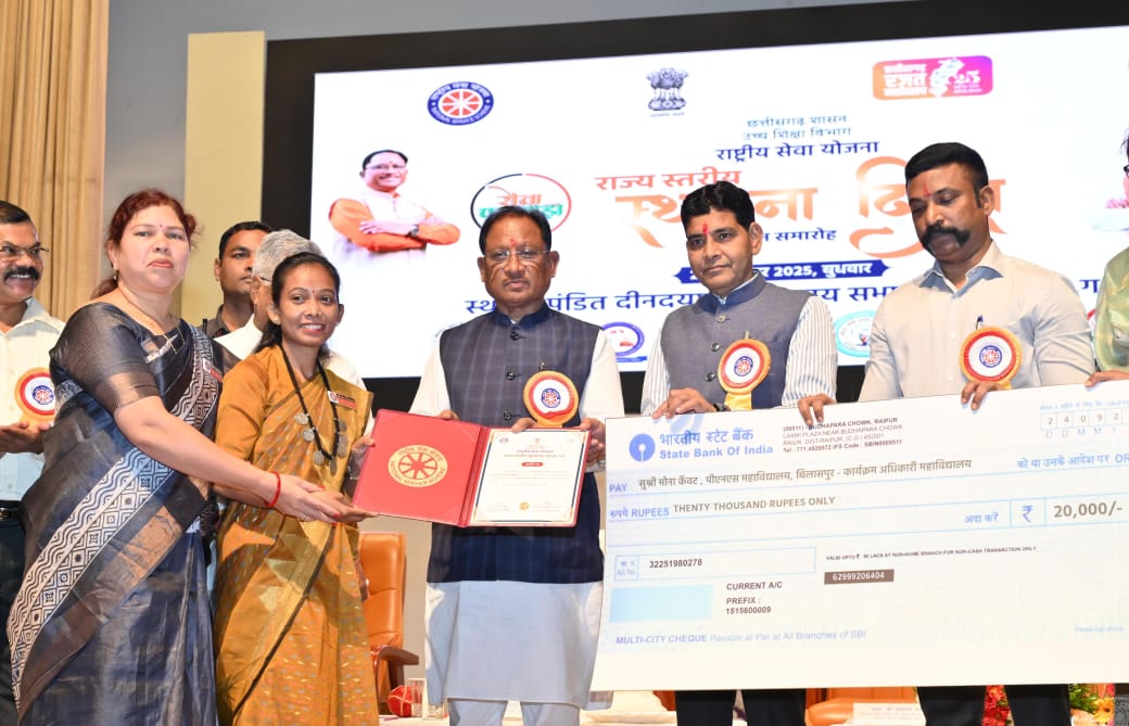 मुख्यमंत्री श्री साय ने कहा कि राष्ट्रीय सेवा योजना के अंतर्गत देशभर में 4 लाख से अधिक विद्यार्थी स्वयंसेवक के रूप में कार्य कर रहे हैं। हमारे प्रदेश में भी एक लाख से अधिक विद्यार्थी सक्रिय रूप से अपनी भूमिका निभा रहे हैं, जो छत्तीसगढ़ के लिए गर्व का विषय है। आज जिन स्वयंसेवकों को उनके श्रेष्ठ कार्यों के लिए सम्मानित किया जा रहा है, उन्हें हम हार्दिक बधाई देते हैं।