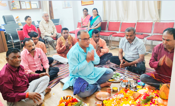 - सचिव चेतन दंडवते ने बृहन्महाराष्ट्र मंडल के छत्तीसगढ़ कार्यवाह सुबोध टोले से कराई लक्ष्मी पूजा