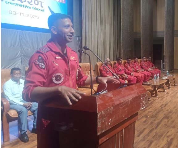 भारतीय वायुसेना की सूर्यकिरण एरोबैटिक टीम के सदस्य दीनदयाल उपाध्याय ऑडिटोरियम पहुँचे, जहाँ उन्होंने विद्यार्थियों से बातचीत की। बच्चों में टीम के पायलटों और तकनीकी विशेषज्ञों को देखकर जबरदस्त उत्साह था। सभागार में तालियों की गड़गड़ाहट के बीच बच्चों ने उत्साह से उनका स्वागत किया।