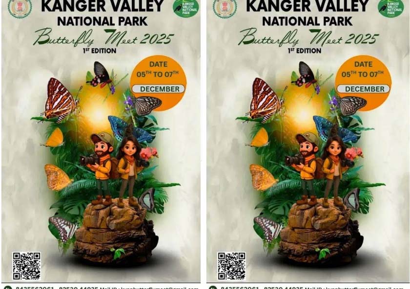 रायपुर। प्रकृति प्रेमियों और तितली विशेषज्ञों के लिए इस दिसंबर एक अद्भुत अनुभव का अवसर आने वाला है। राज्य शासन द्वारा आयोजित तीन दिवसीय 'कांगेर वैली बटरफ्लाई मीट 2025' का आयोजन 5 से 7 दिसंबर 2025 तक सुरम्य कांगेर घाटी राष्ट्रीय उद्यान में किया जा रहा है।