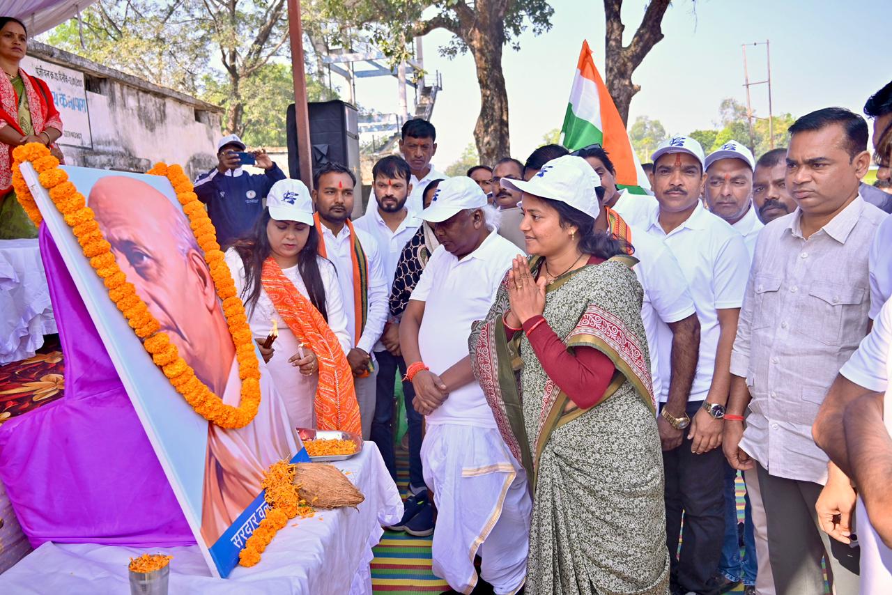रायपुर। अखंड भारत के शिल्पकार लौह पुरुष सरदार वल्लभभाई पटेल की 150वीं जयंती के अवसर पर सूरजपुर में आज भव्य “यूनिटी मार्च” का आयोजन किया गया।जिसमें महिला एवं बाल विकास मंत्री श्रीमती लक्ष्मी राजवाड़े ने सम्मिलित होकर लोगों का उत्साह बढ़ाया। मंत्री श्रीमती राजवाड़े ने कहा कि छत्तीसगढ़ राज्य अपना रजत जयंती वर्ष मना रहा है और इसी दौरान सरदार वल्लभभाई पटेल की 150वीं जयंती मनाना राष्ट्र के प्रति गर्व और कृतज्ञता का अवसर है। उन्होंने कहा कि सरदार पटेल ने 565 रियासतों का एकीकरण कर अखंड भारत की नींव रखी।सरदार पटेल का जीवन राष्ट्रनिष्ठा का सर्वाेत्तम उदाहरण है। त्याग, सेवा और राष्ट्रहित को सर्वाेपरि रखने की उनकी सोच सदैव प्रेरणा देती रहेगी।इस विशाल पदयात्रा में हजारों नागरिक, स्कूली छात्र-छात्राएं, गणमान्यजन और अधिकारी शामिल हुए। “भारत माता की जय”, “सरदार पटेल अमर रहें” और “वंदे मातरम्” के उद्घोषों से पूरा मार्ग देशभक्ति के रंग में सराबोर हो गया।पदयात्रा का शुभारंभ प्रातः 9 बजे माँ समलेश्वरी महामाया मंदिर, केनापारा से हुआ। रैली तेलाईकछार, स्वामी आत्मानंद इंग्लिश मीडियम स्कूल, कन्या हायर सेकेंडरी स्कूल, व्हीएम नर्सिंग कॉलेज, अम्बेडकर चौक, शिवानंदपुर वार्ड क्रमांक 12 होते हुए बस स्टैंड विश्रामपुर में सम्पन्न हुई। 8 से 10 किलोमीटर लंबी इस रैली में शहरवासियों का उत्साह देखते ही बनता था।