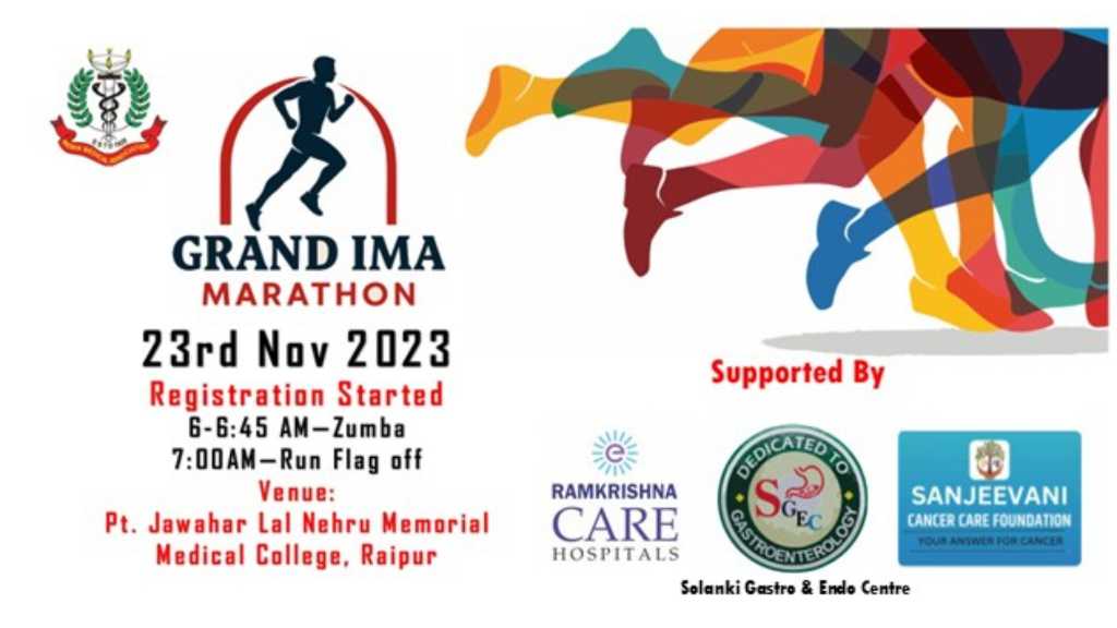रायपुर। कैंसर के प्रति जागरूकता बढ़ाने और लोगों में स्वस्थ जीवनशैली के प्रति उत्साह पैदा करने के उद्देश्य से पंडित जवाहरलाल नेहरू मेमोरियल मेडिकल कॉलेज, रायपुर में आगामी 23 नवंबर, रविवार को ग्रैंड आईएमए मैराथन का भव्य आयोजन किया जा रहा है। रन फॉर हेल्थ, वॉर अगेंस्ट कैंसर थीम पर आधारित यह मैराथन स्वास्थ्य, ऊर्जा और उत्साह का अद्वितीय सम्मिलन होगी। इस कार्यक्रम में हर आयु वर्ग के लोग अपने परिवार के साथ भाग लेकर न केवल फिटनेस का आनंद लेंगे, बल्कि कैंसर के विरुद्ध जागरूकता का महत्वपूर्ण संदेश भी देंगे।