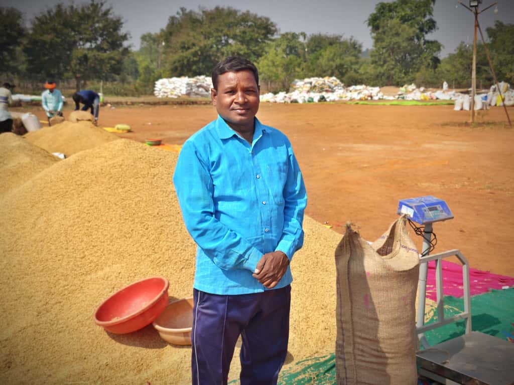 धान खरीदी केन्द्र में की गई सुव्यवस्थित व्यवस्था से प्रसन्नचित है किसान कृपाराम बलिहार
